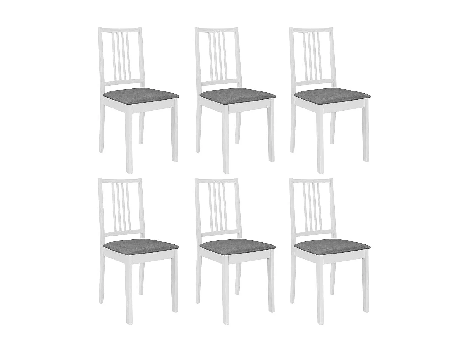 6 pcs Chaises à dîner avec coussins Blanc Bois solide