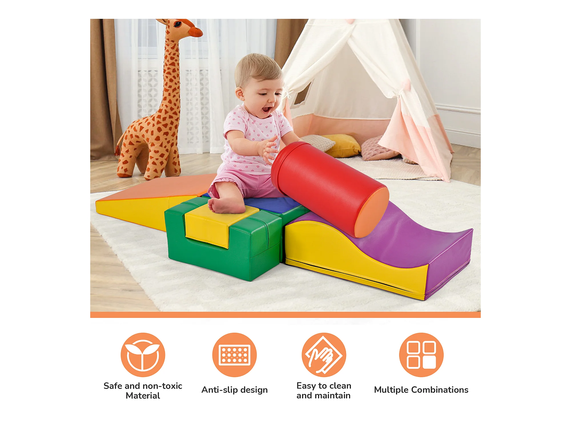 6 Pièces Aire de jeux Blocs De Construction Géants Souples , Modules Courir Et Grimper, PU - orange