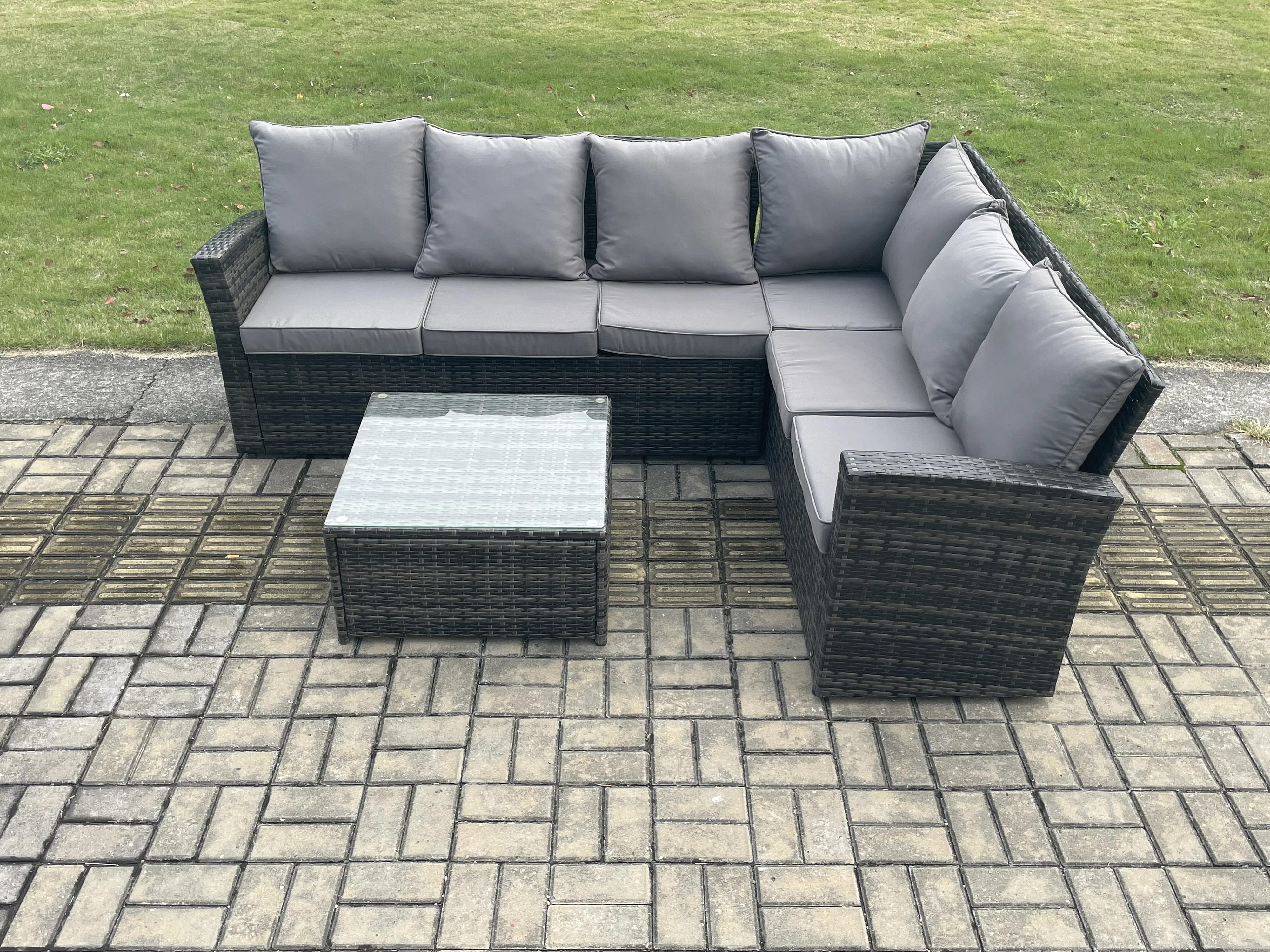 6 places Ensemble de meubles de jardin en polyrotin avec Canapé d'angle à dossier haut Fauteuil Table basse carrée