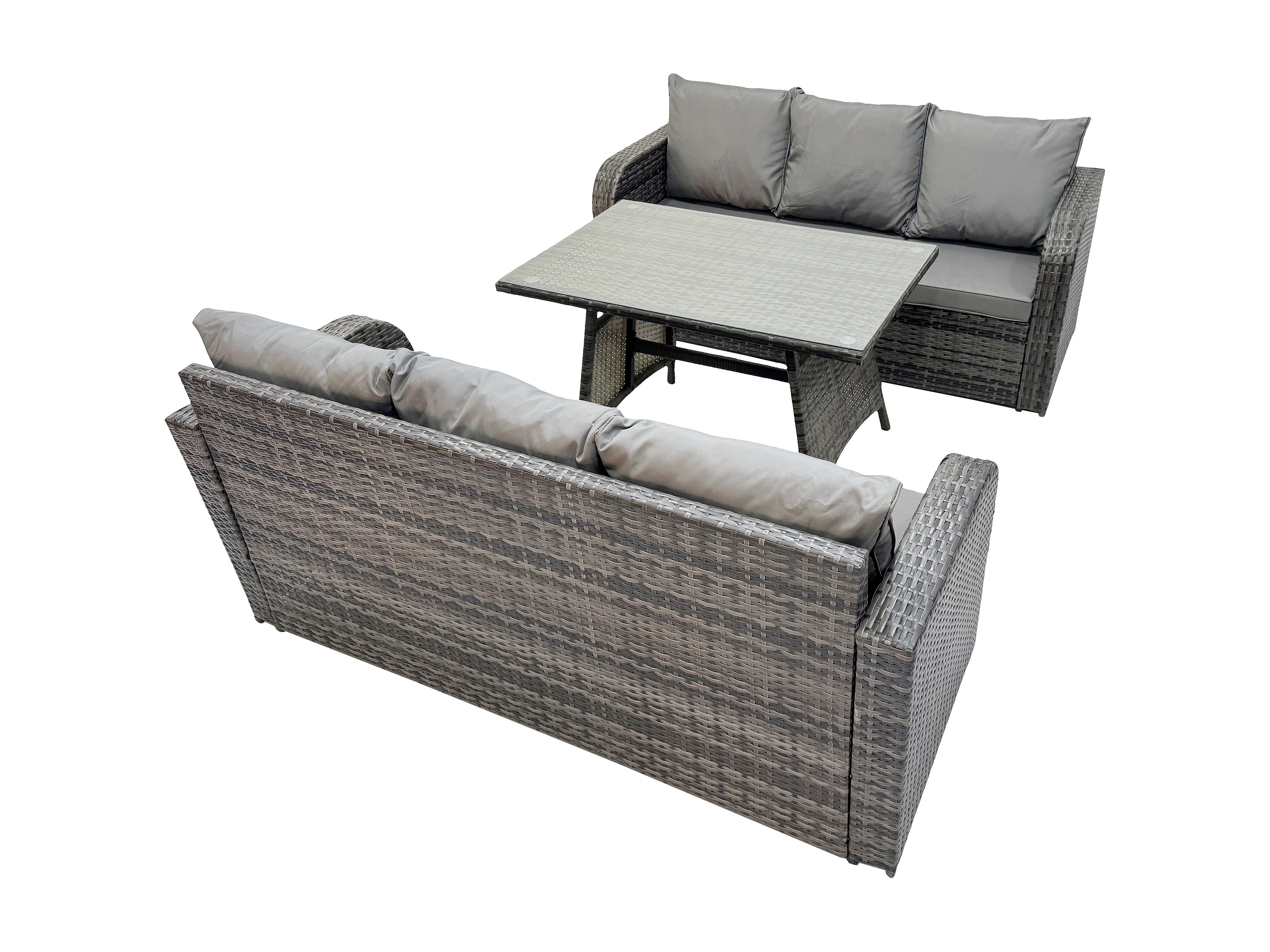 6 places Garden Furniture Canapé Set Table à manger rectangulaire Intérieur Extérieur Rattan Set Gris foncé mixte