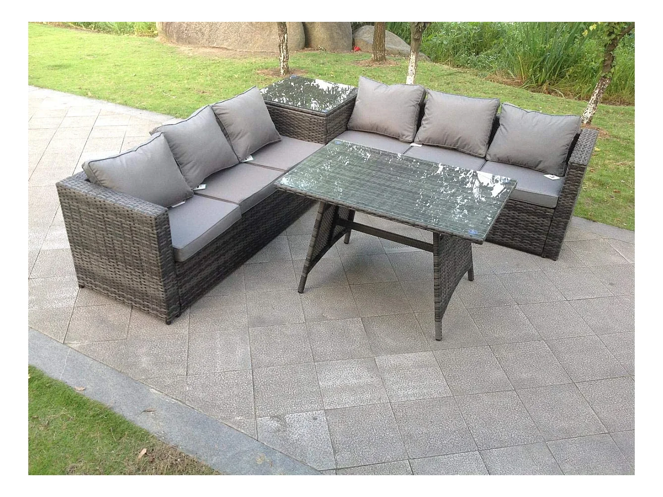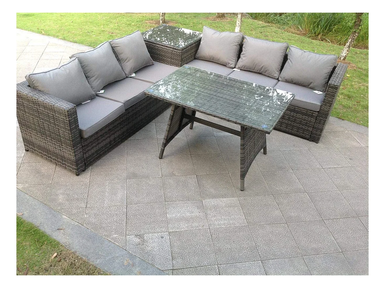 6 places Gris foncé mixte Salon de Jardin Extérieur en Résine avec 2 Tables