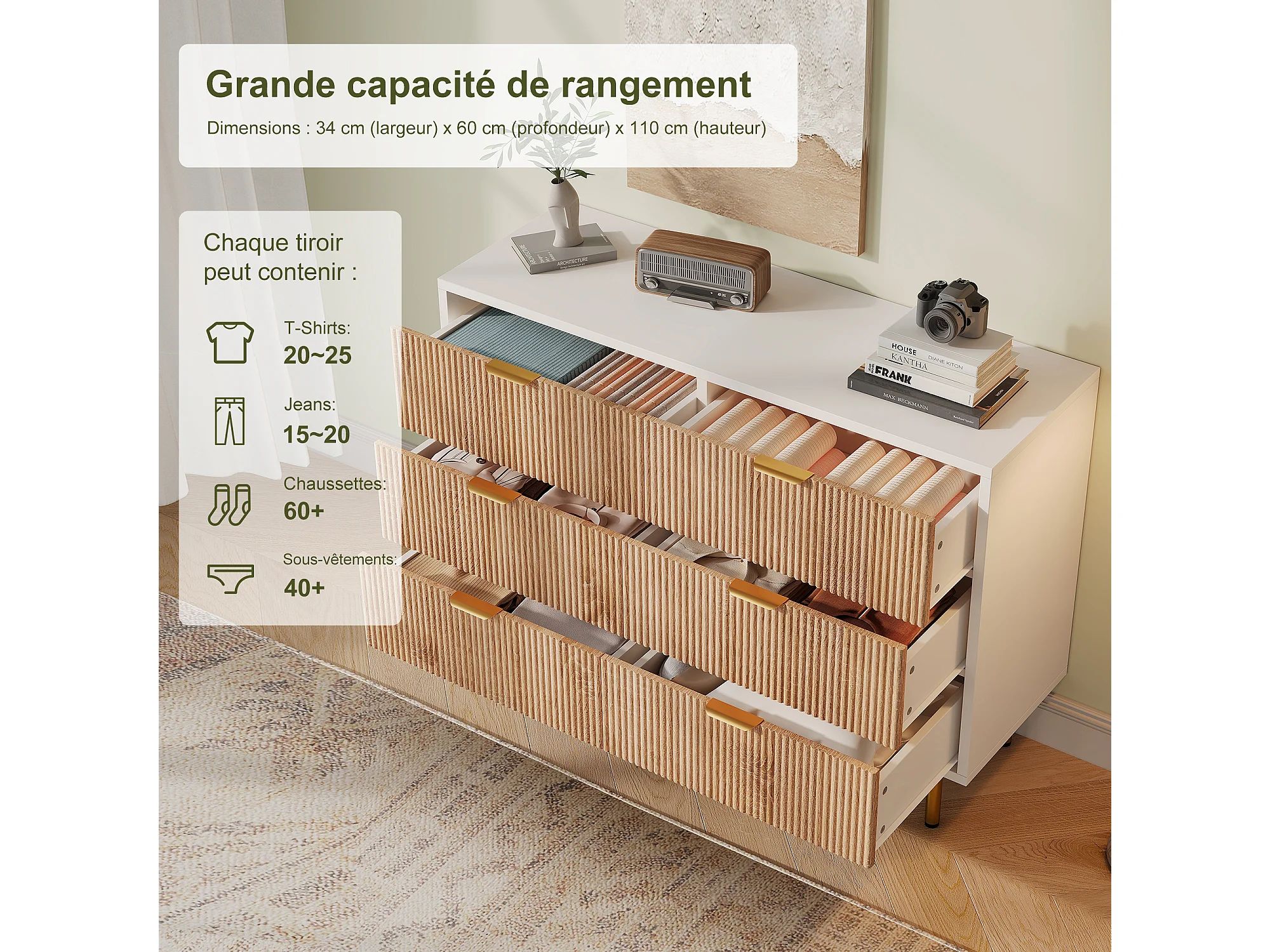 6 tiroirs Table de lit-coffre-tiroirs-meubles de nuit en bois avec poignée en métal-Boho placard-placard de stockage