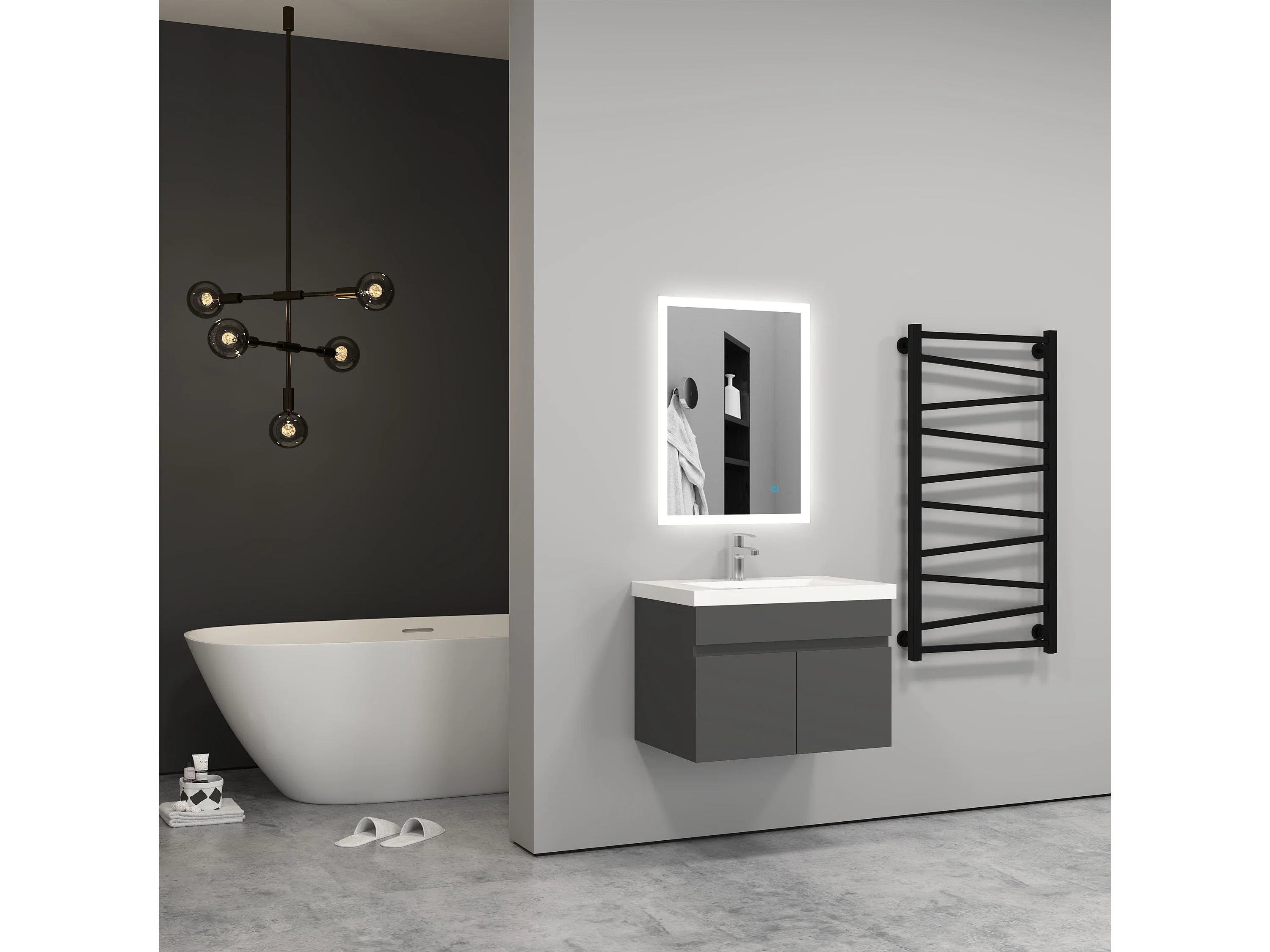 60cm Meuble salle de bain anthracite 2 portes avec une vasque à poser Aica