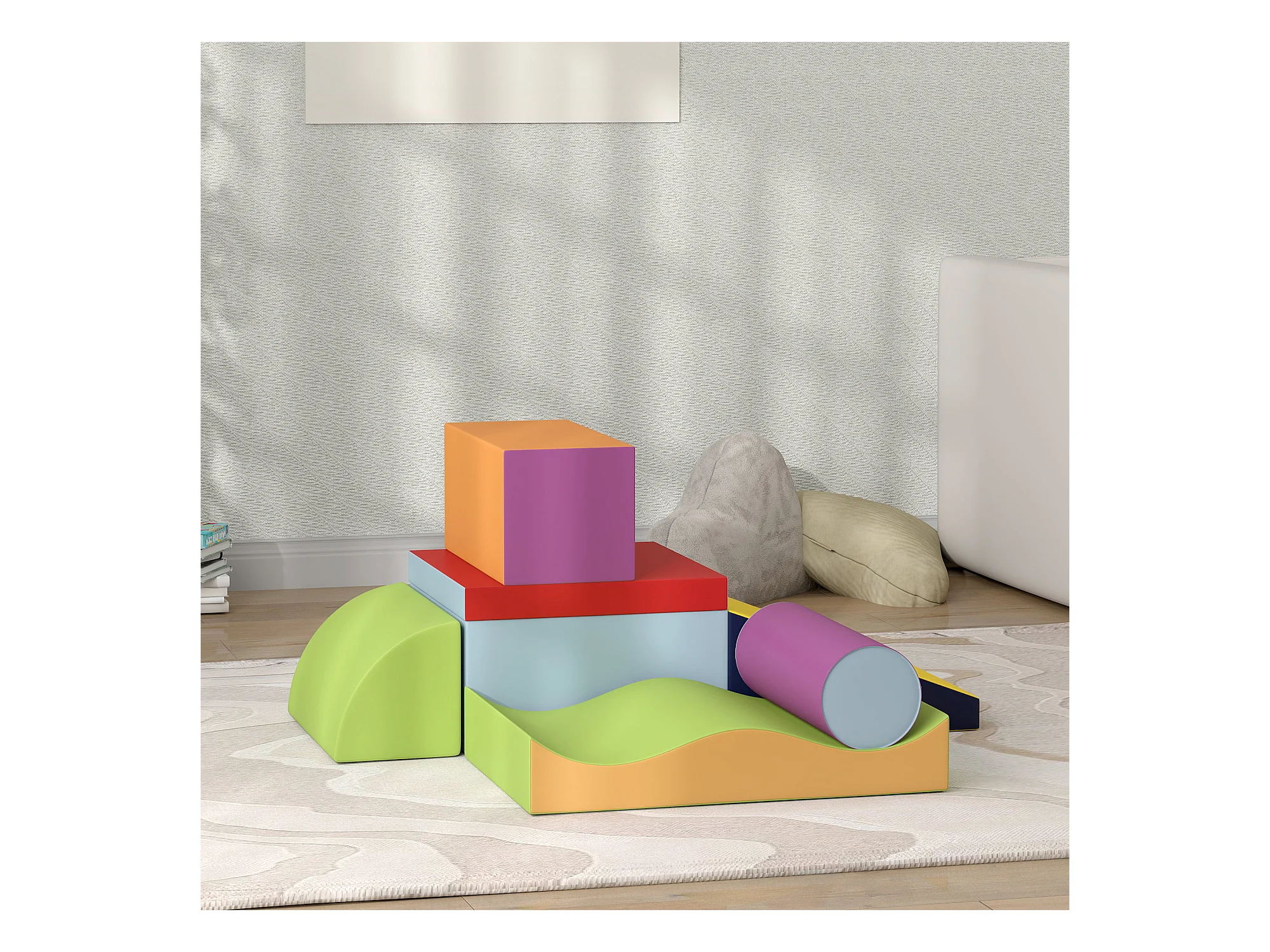 7 blocs de construction en mousse XXL - modules de motricité - jouets éducatifs - certifiés normes EN71-1-2-3 - mousse EPE revêtement PU multicolore