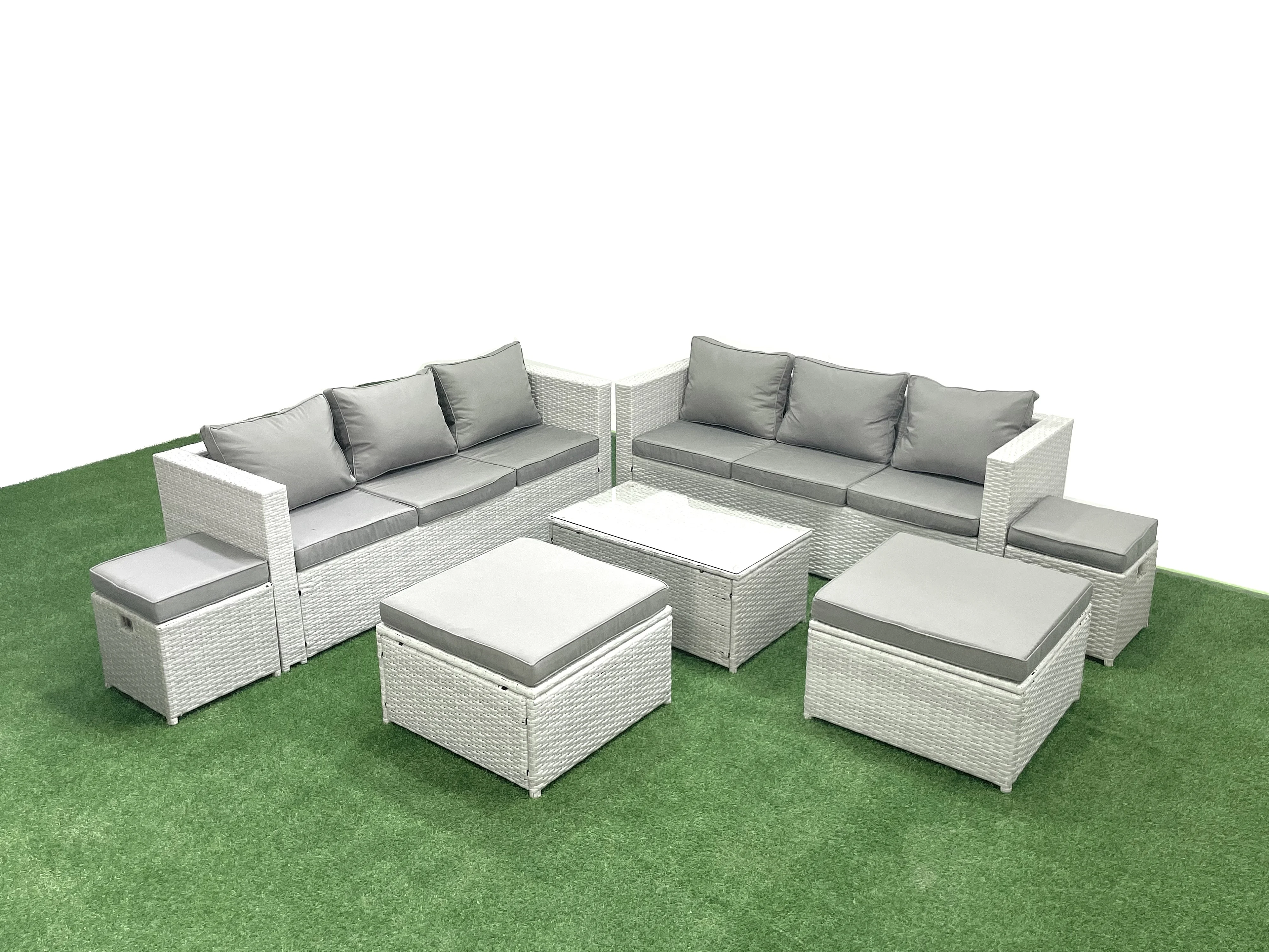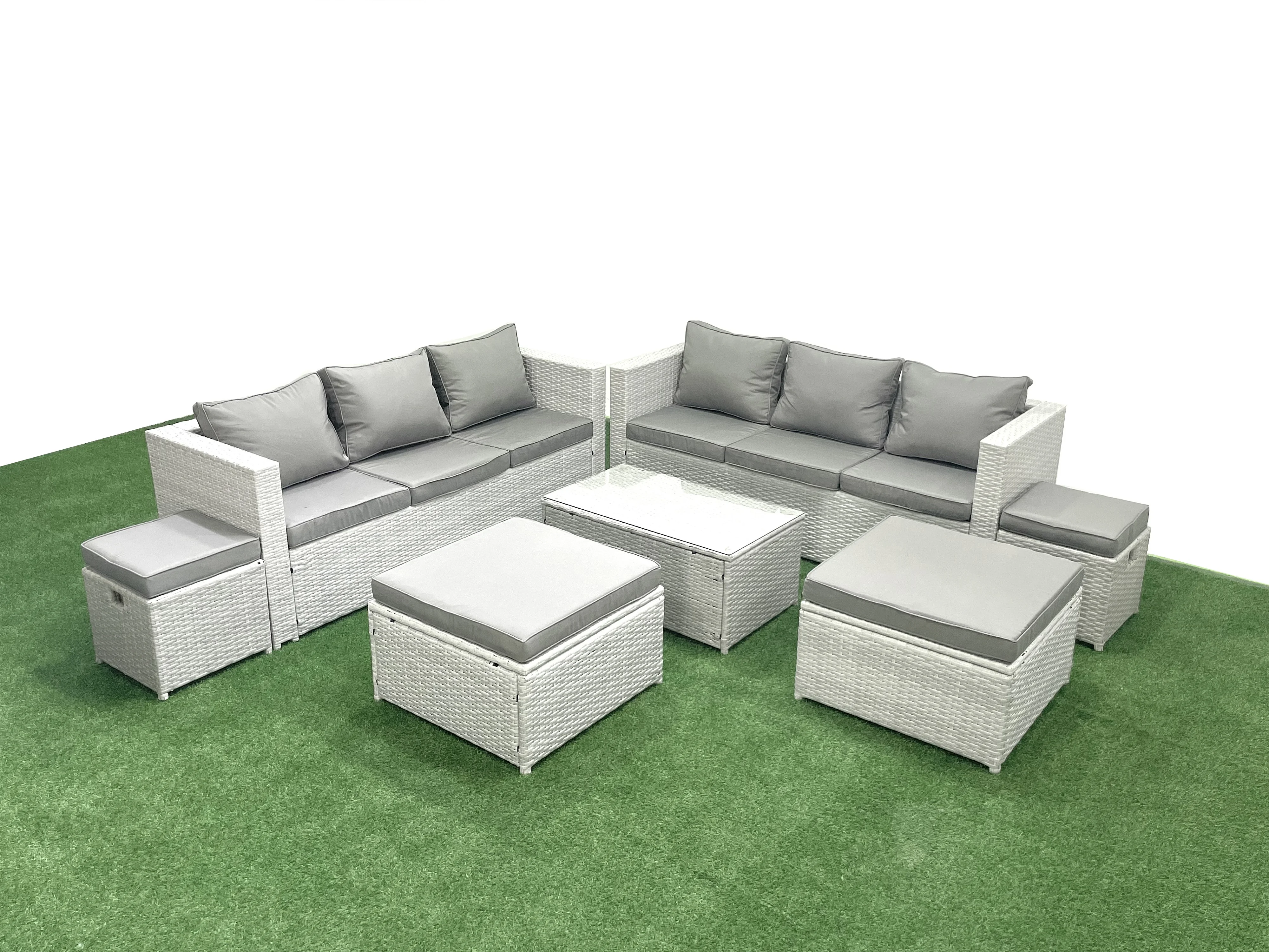 7 Pièces Salon de jardin Canapé de jardin Table basse avec 4 Tabourets Gris clair mixte