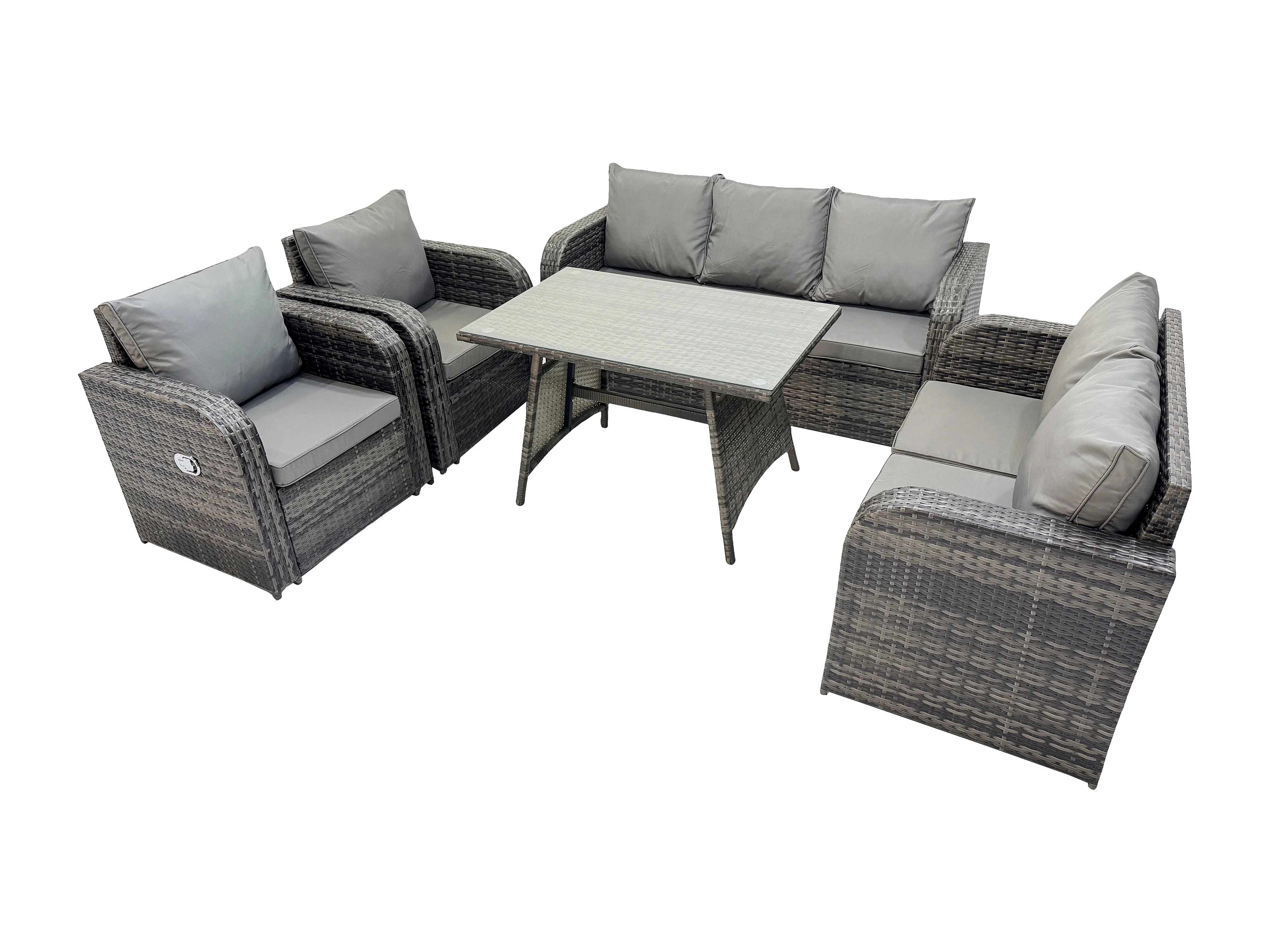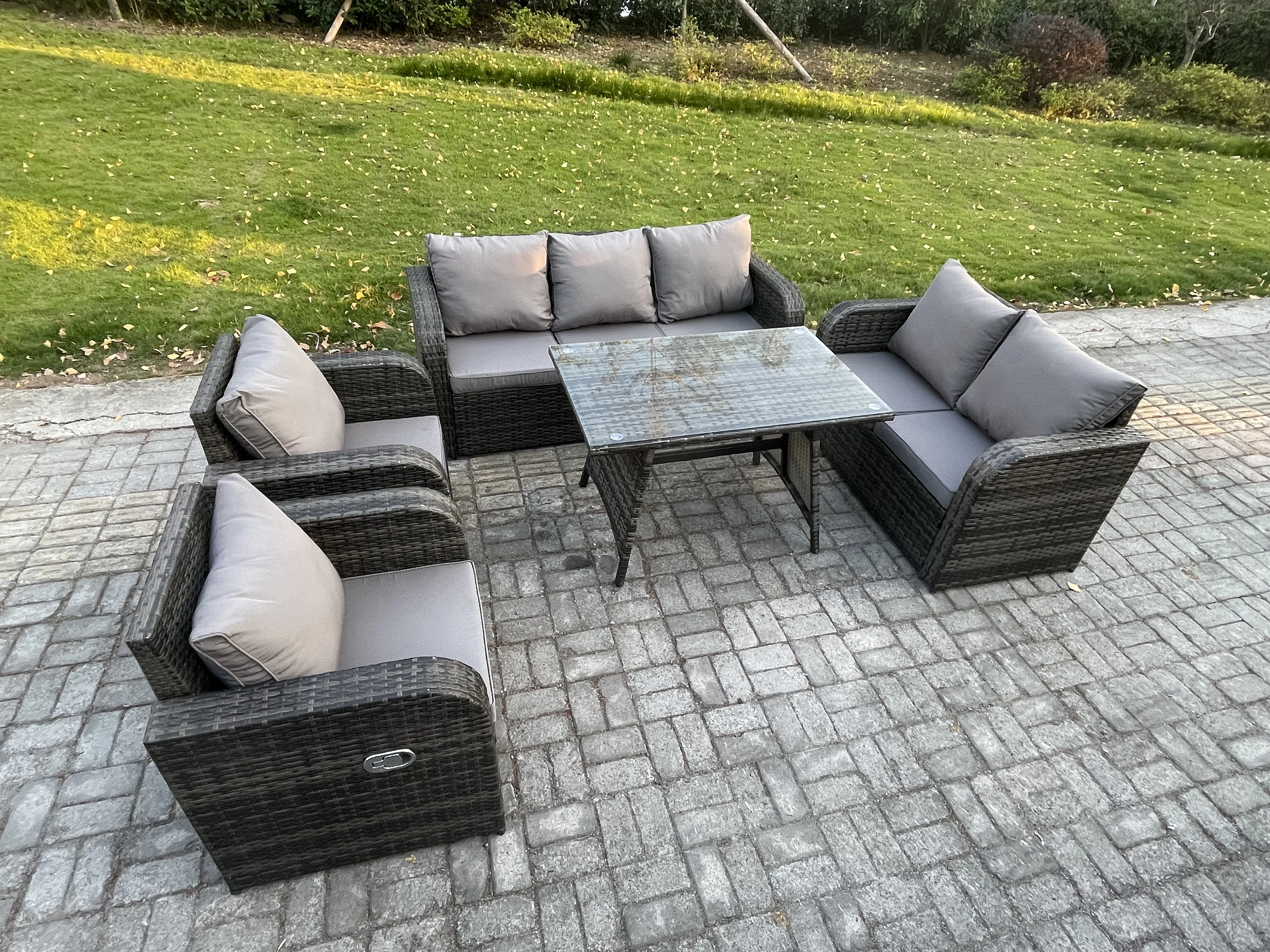 7 places Dossier haut Ensemble de meubles de jardin en rotin avec Table à manger Chaise inclinable Canapé 3 places Canapé d'amour