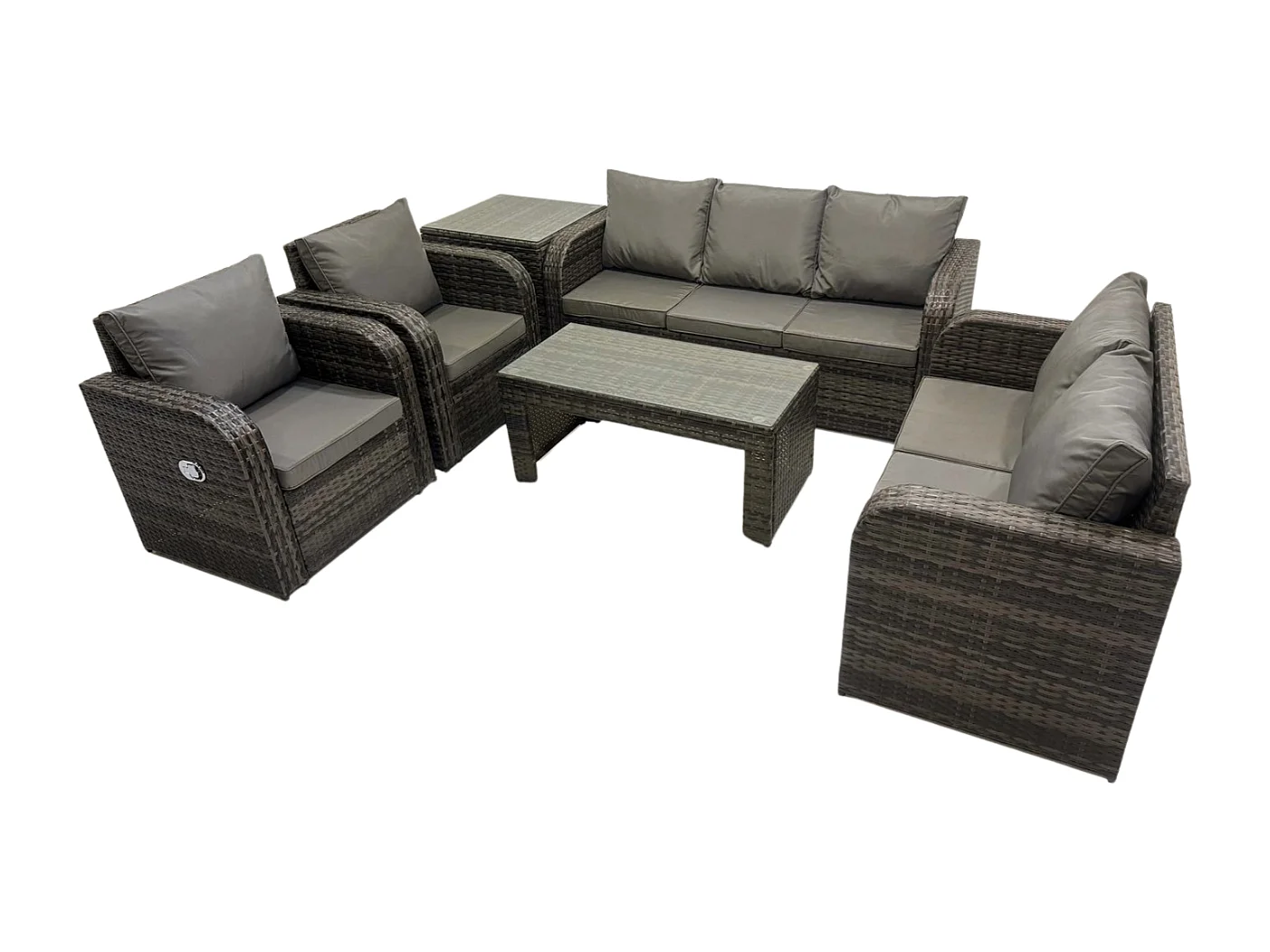 7 places Ensembles de salon de jardin avec Table basse rectangulaire Table d'appoint Gris foncé mixte