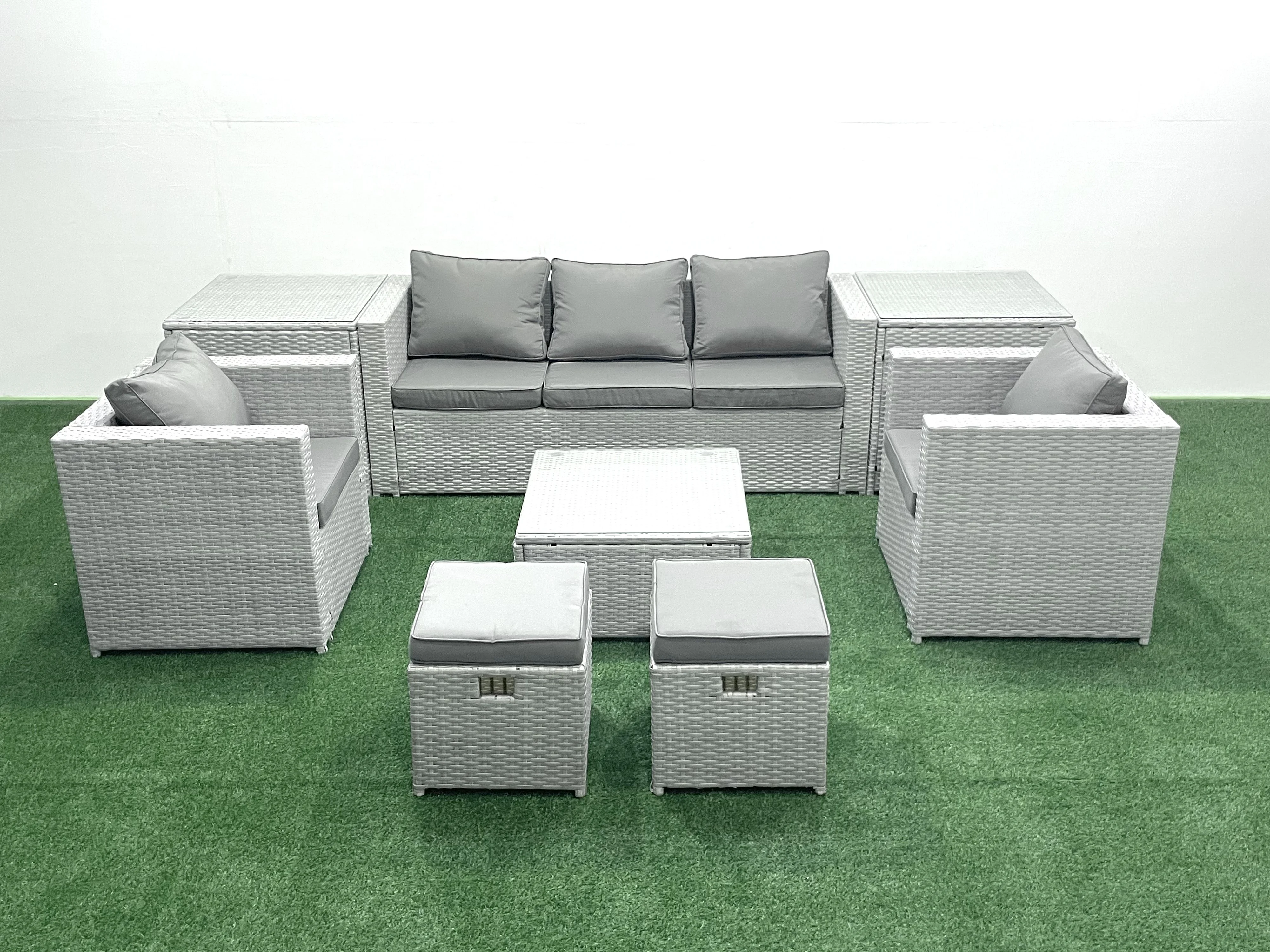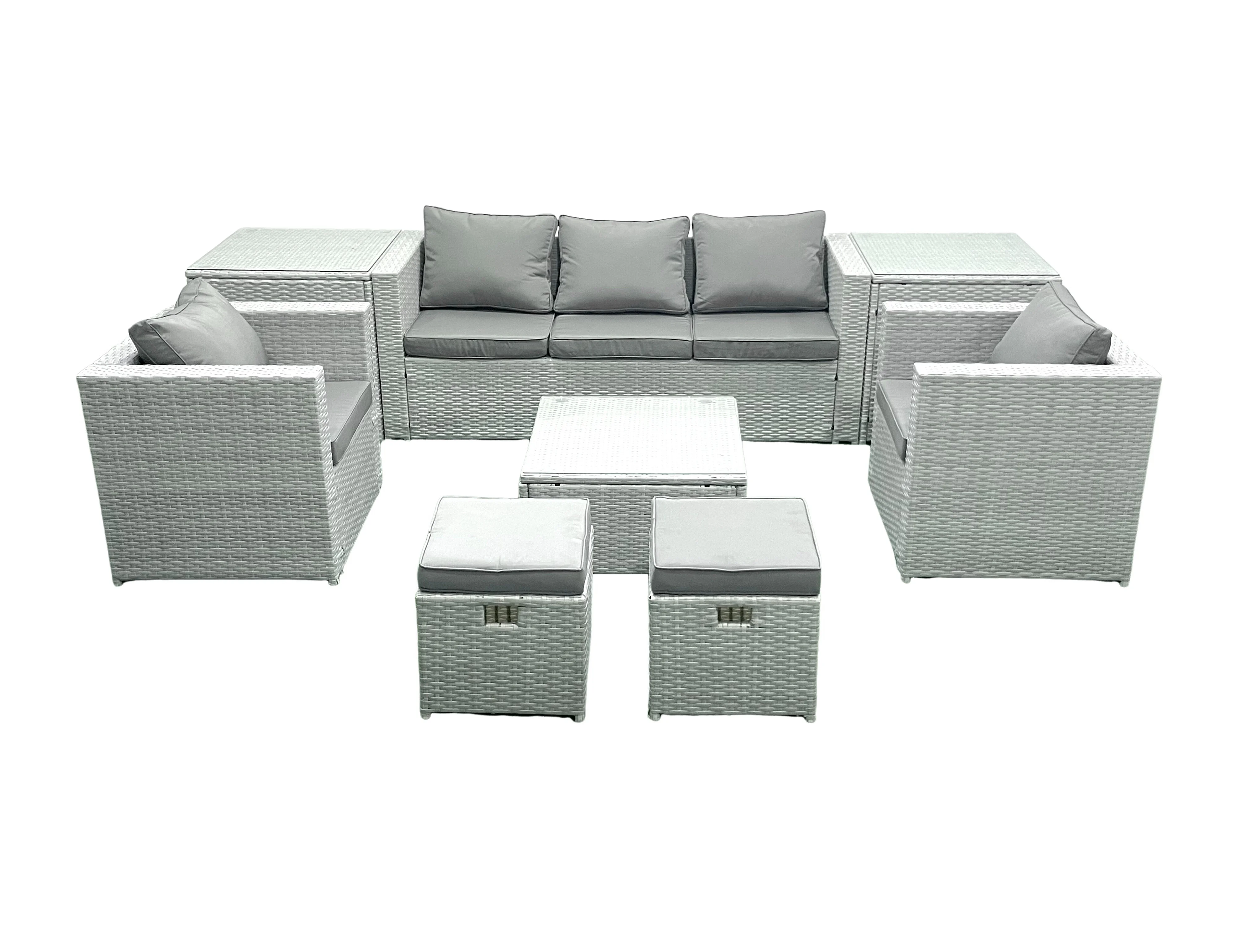 7 places Salon de jardin avec Canapé 3 places 2 Chaise Table basse carrée 2 Petits tabourets 2 Tables d'appoint Gris clair mixte