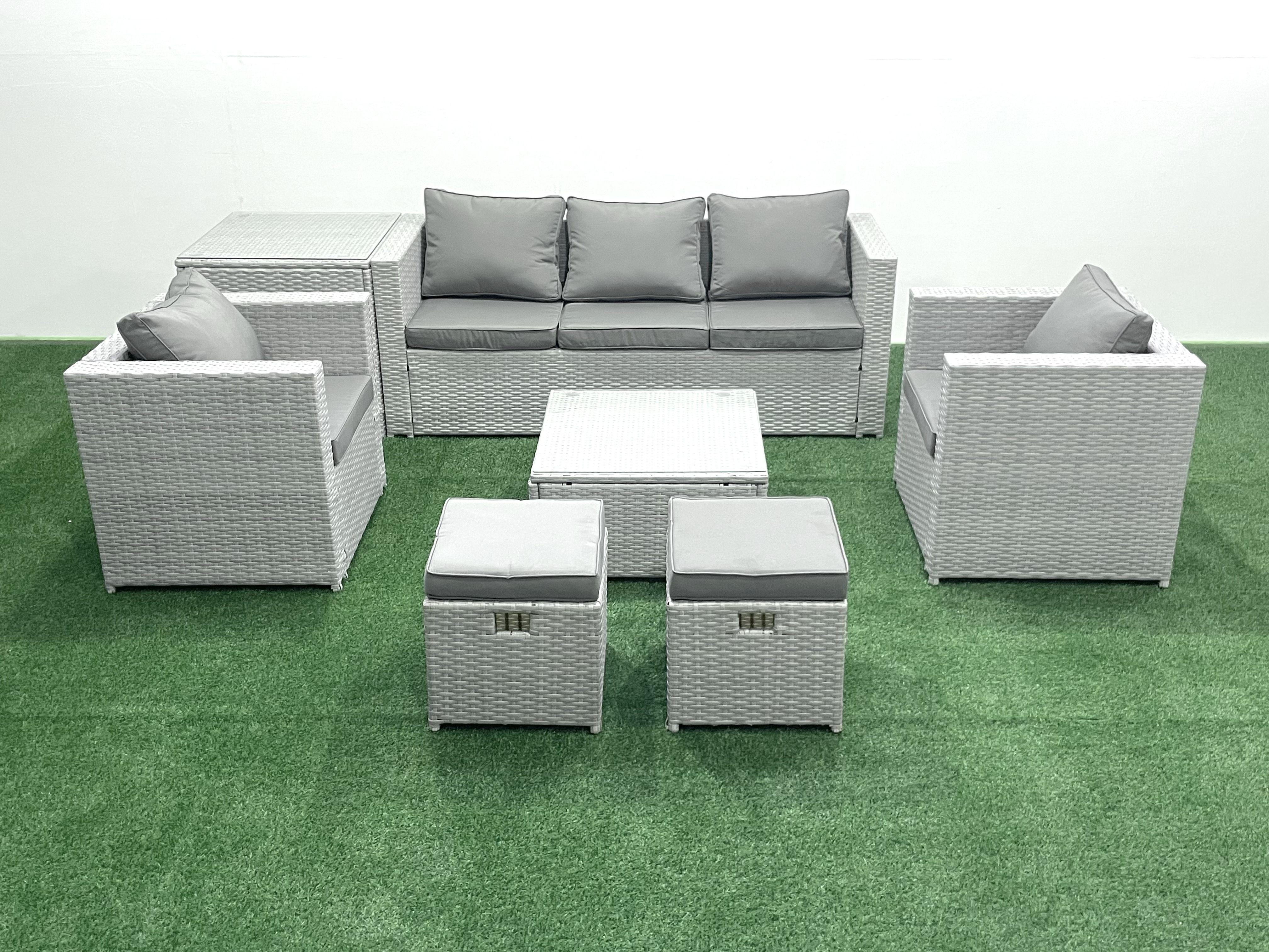 7 places Salon de jardin avec Canapé 3 places 2 Chaise Table basse carrée 2 Petits tabourets Table d'appoint Gris clair mixte
