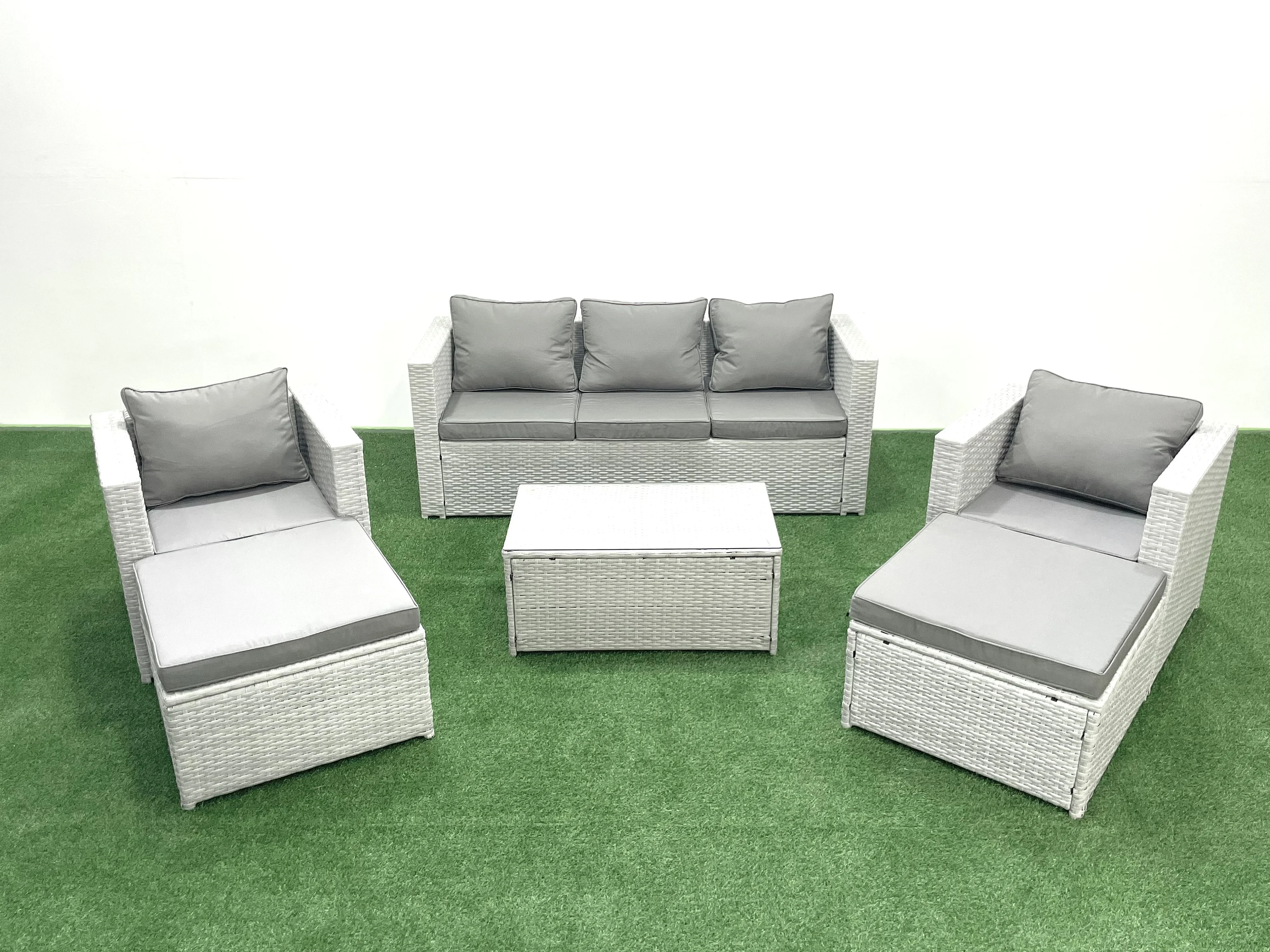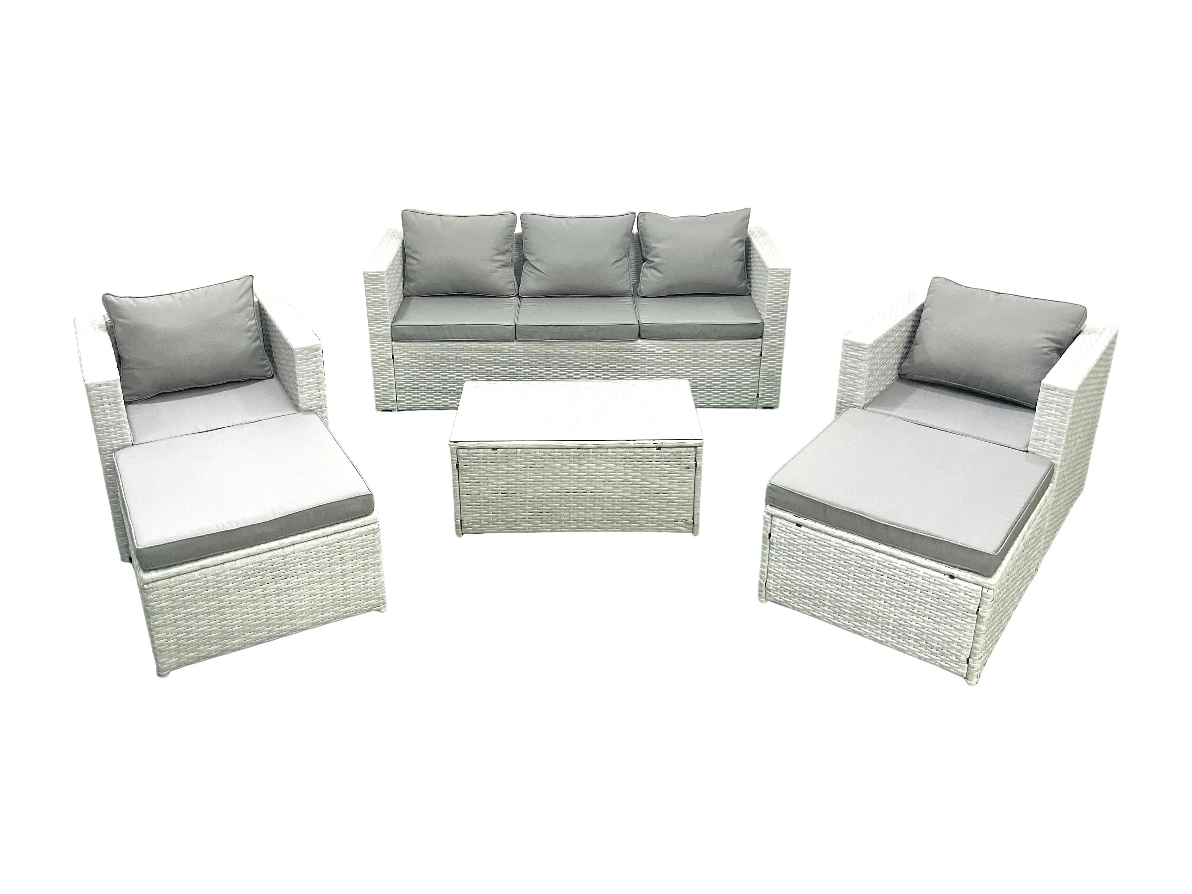 7 places Salon de jardin avec Canapé 3 places 2 Chaise Table basse rectangulaire 2 Grand tabourets Gris clair mixte
