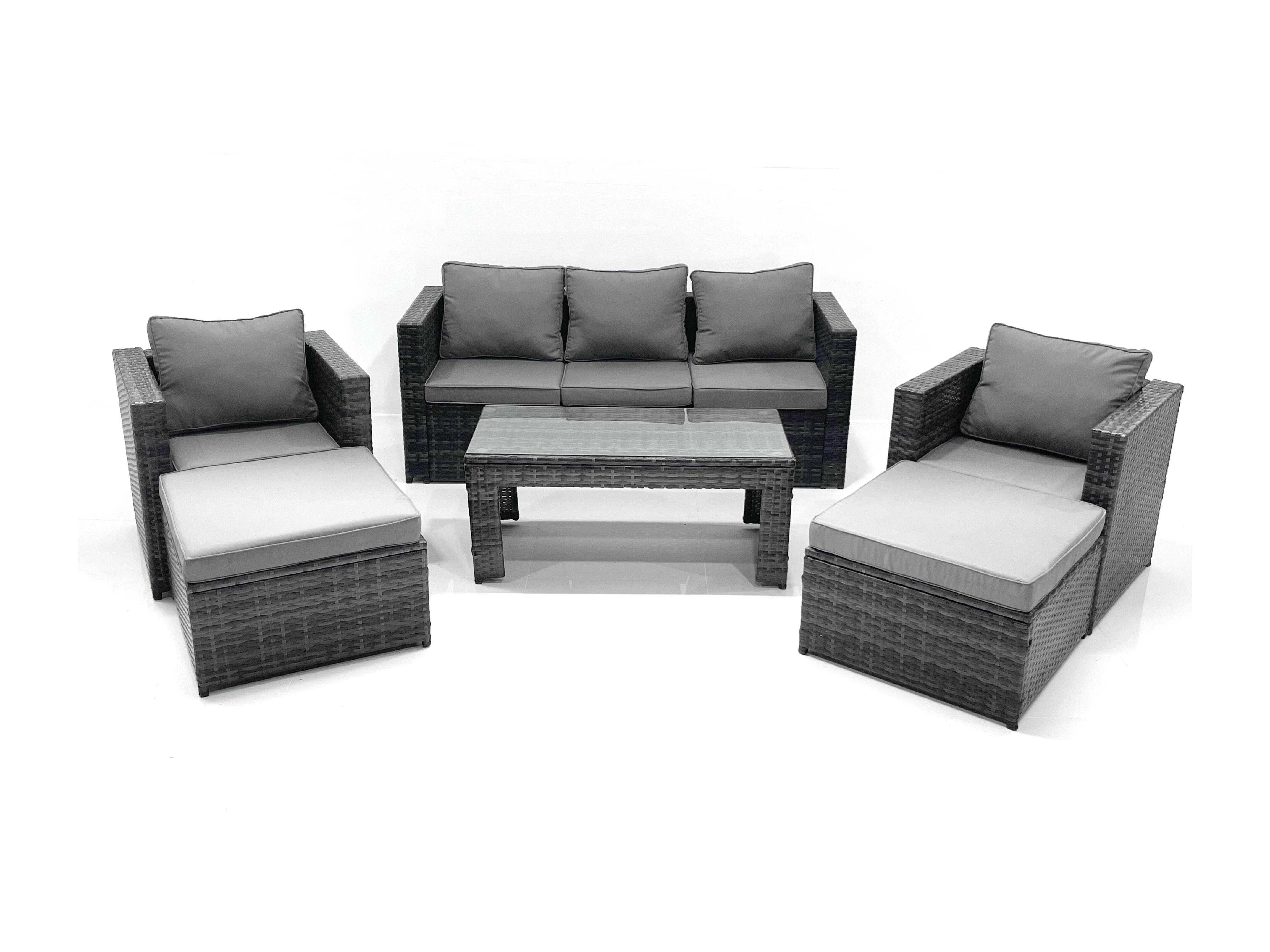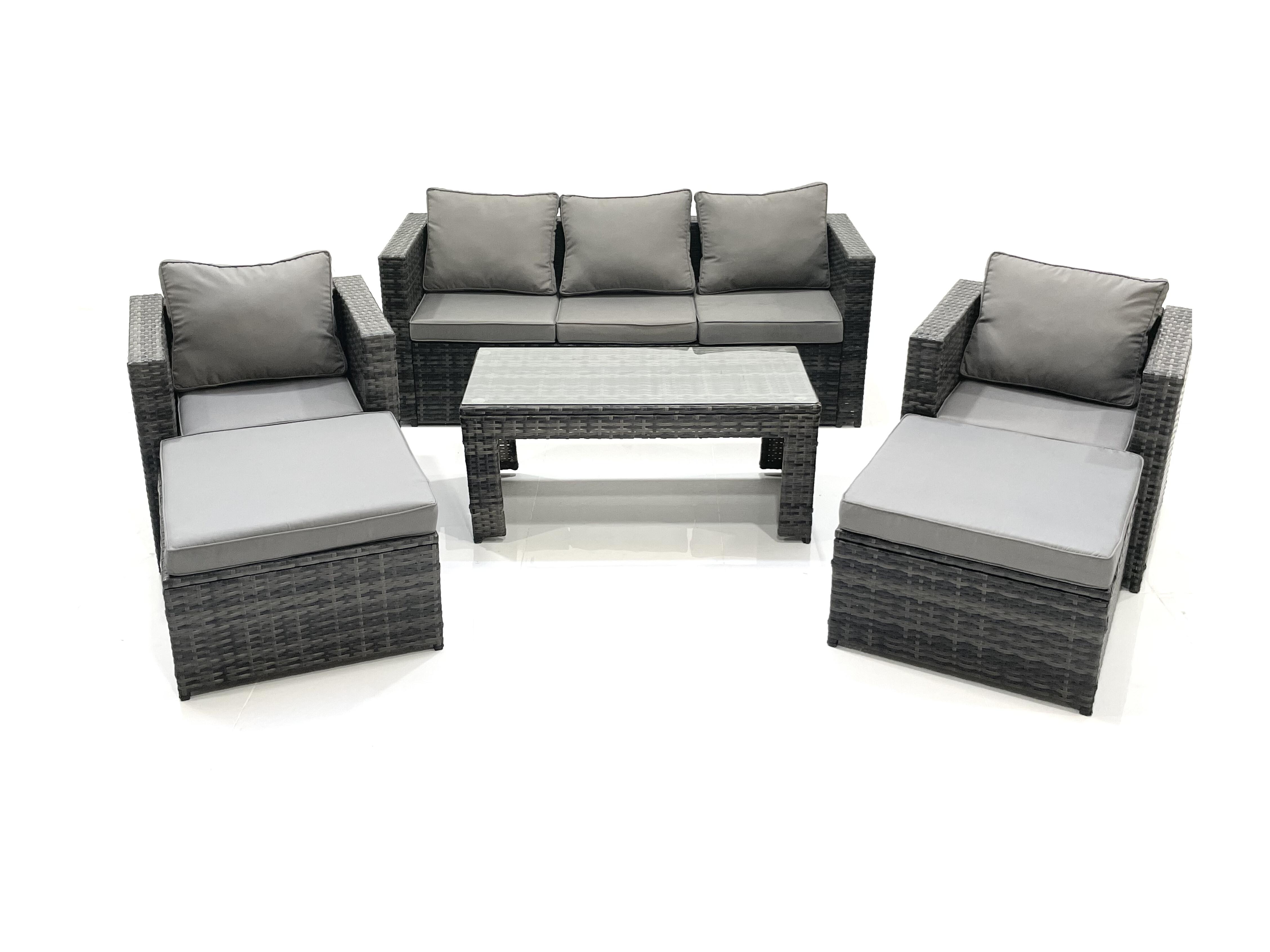 7 places Salon de jardin Ensemble de canapés en rotin avec Table basse 2 Fauteuil 2 Grand tabourets Gris foncé mixte