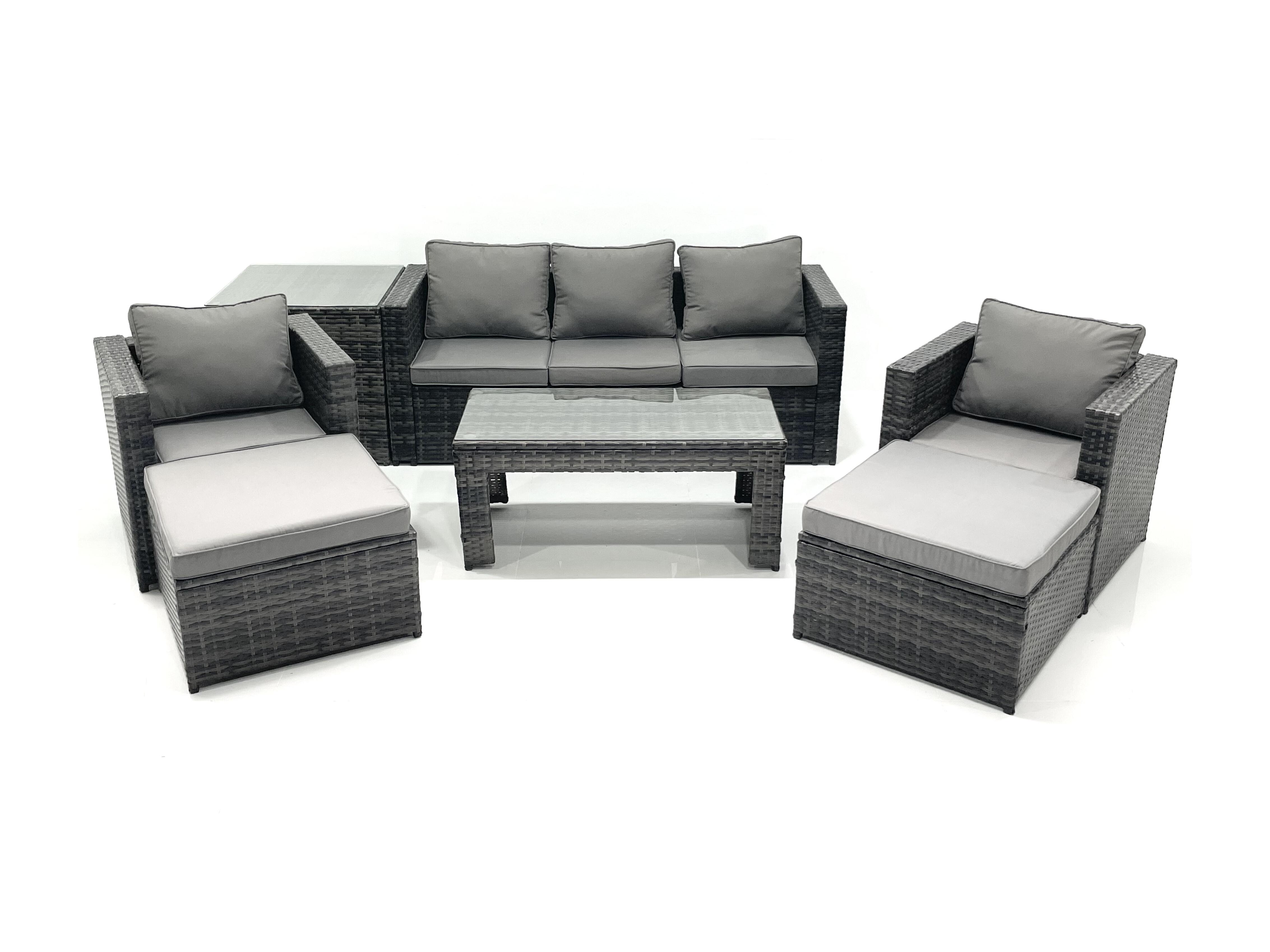 7 places Salon de jardin Ensemble de canapés en rotin avec Table basse 2 Fauteuil 2 Grand tabourets Table d'appoint Gris foncé mixte