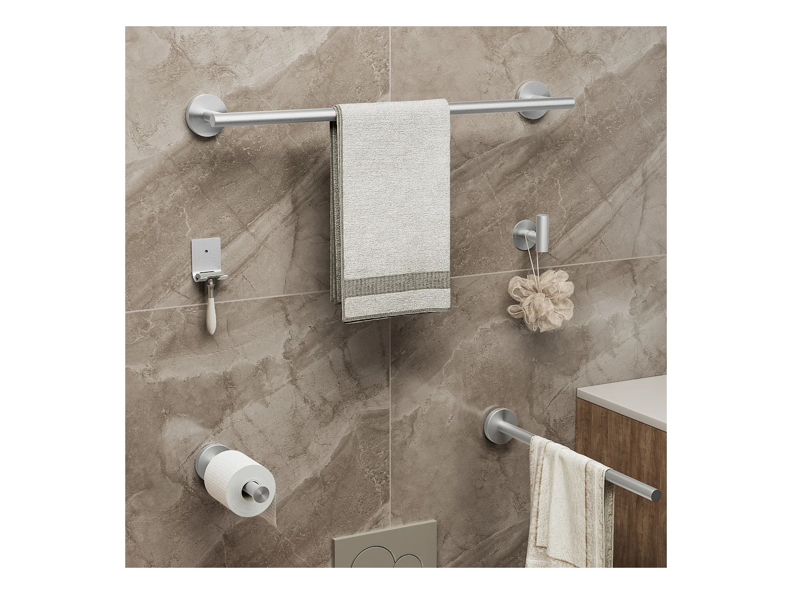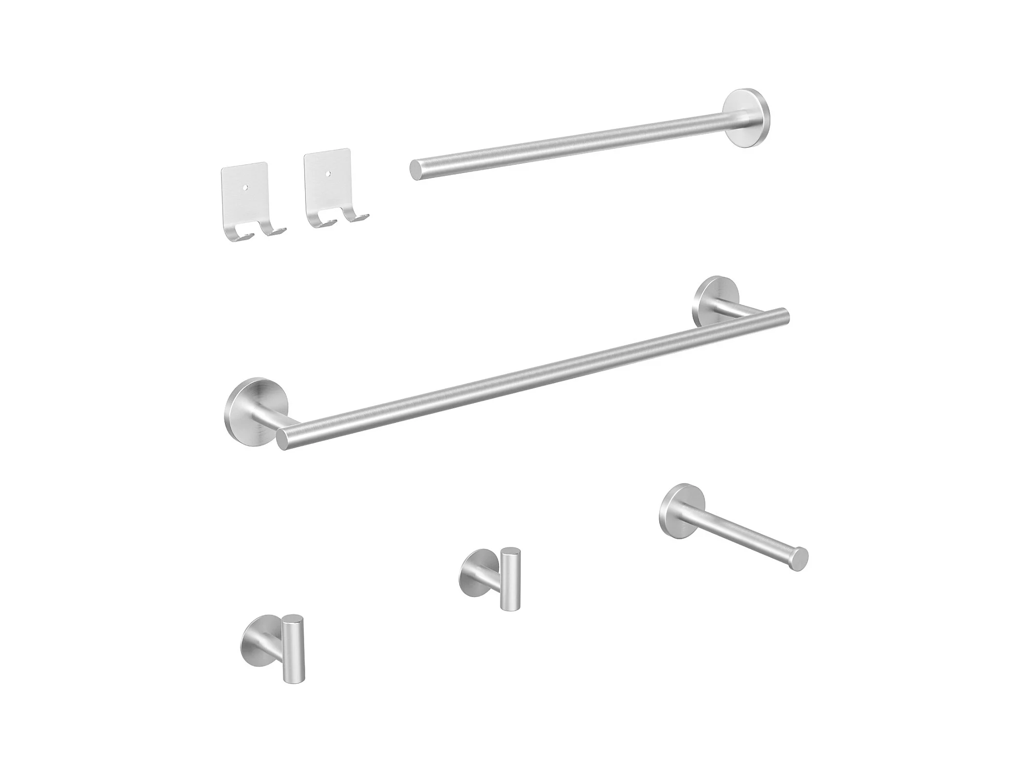 7PCS Ensemble de Salle de Bain - 1 Barre à Serviettes + 1 Barre à Serviettes Latérale + 1 Porte-rouleau de Papier + 4 Crochets (Brossé)
