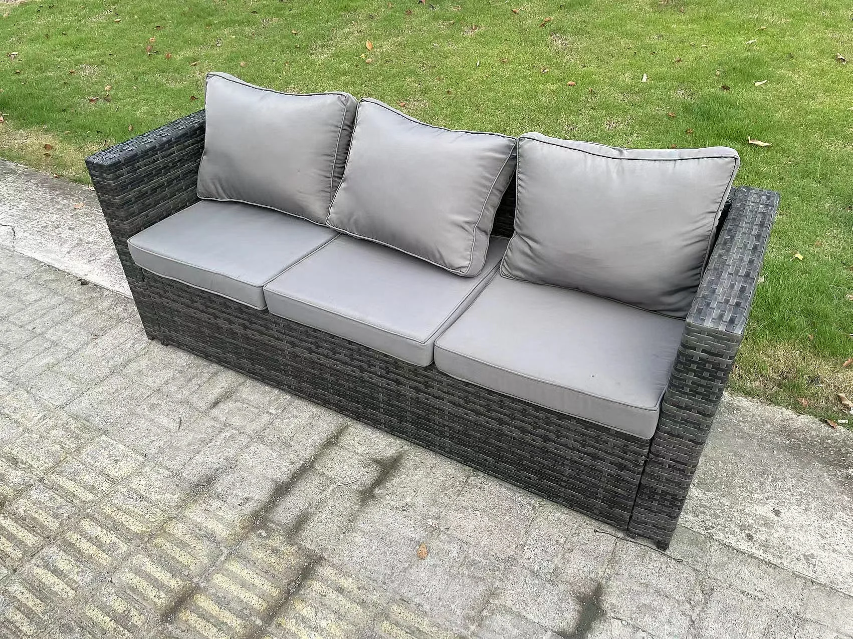 8 Places Ensemble de meubles de jardin en rotin ave Table à manger réglable en hauteur canapé 2 Tabourets Mélange gris foncé