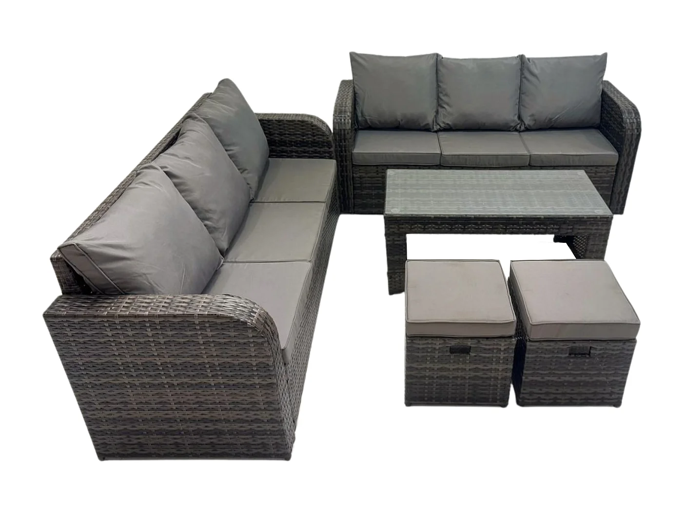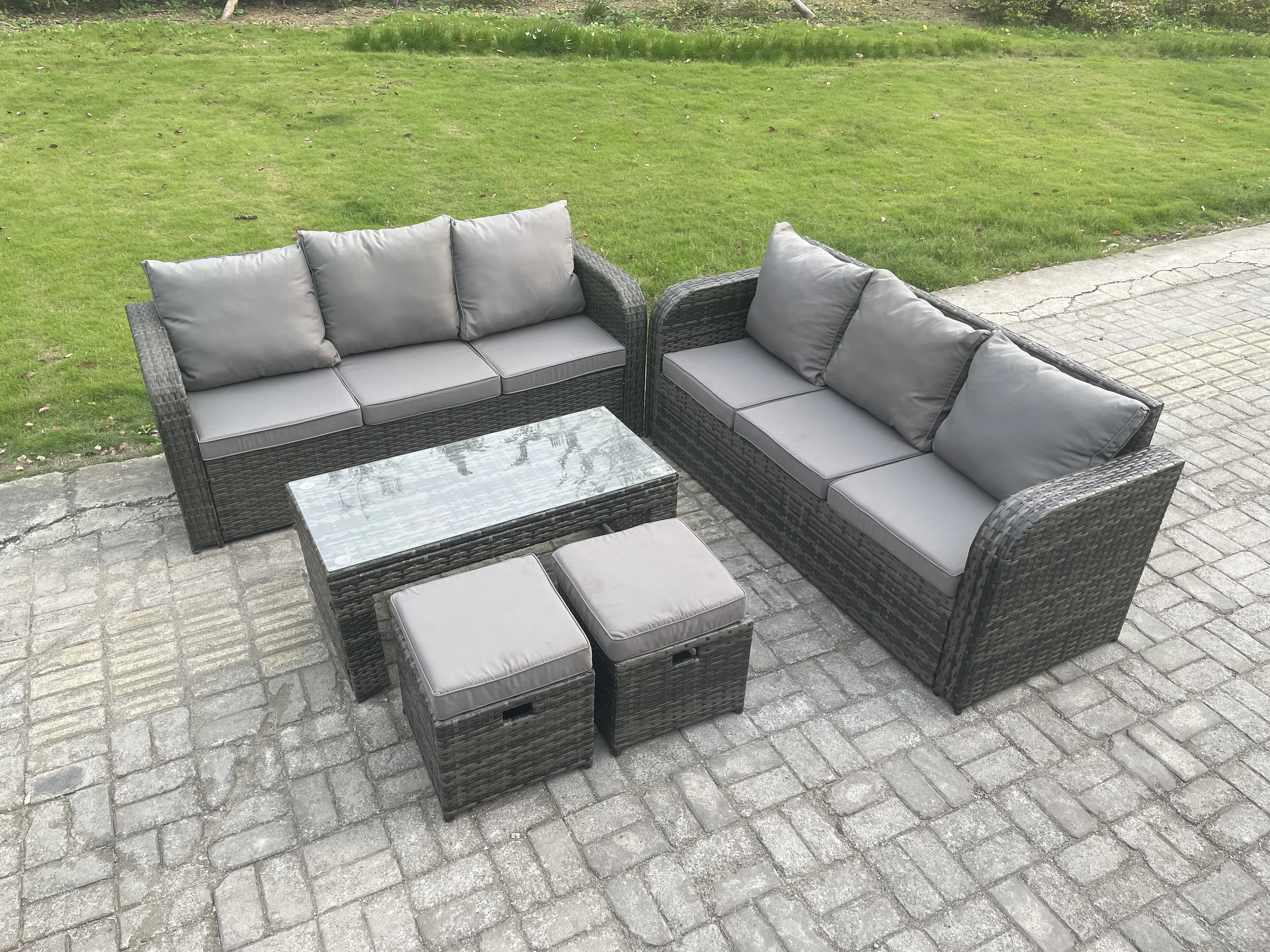 8 places Ensembles de meubles de jardin Ensemble de canapés en rotin avec Table basse rectangulaire 2 Petits tabourets
