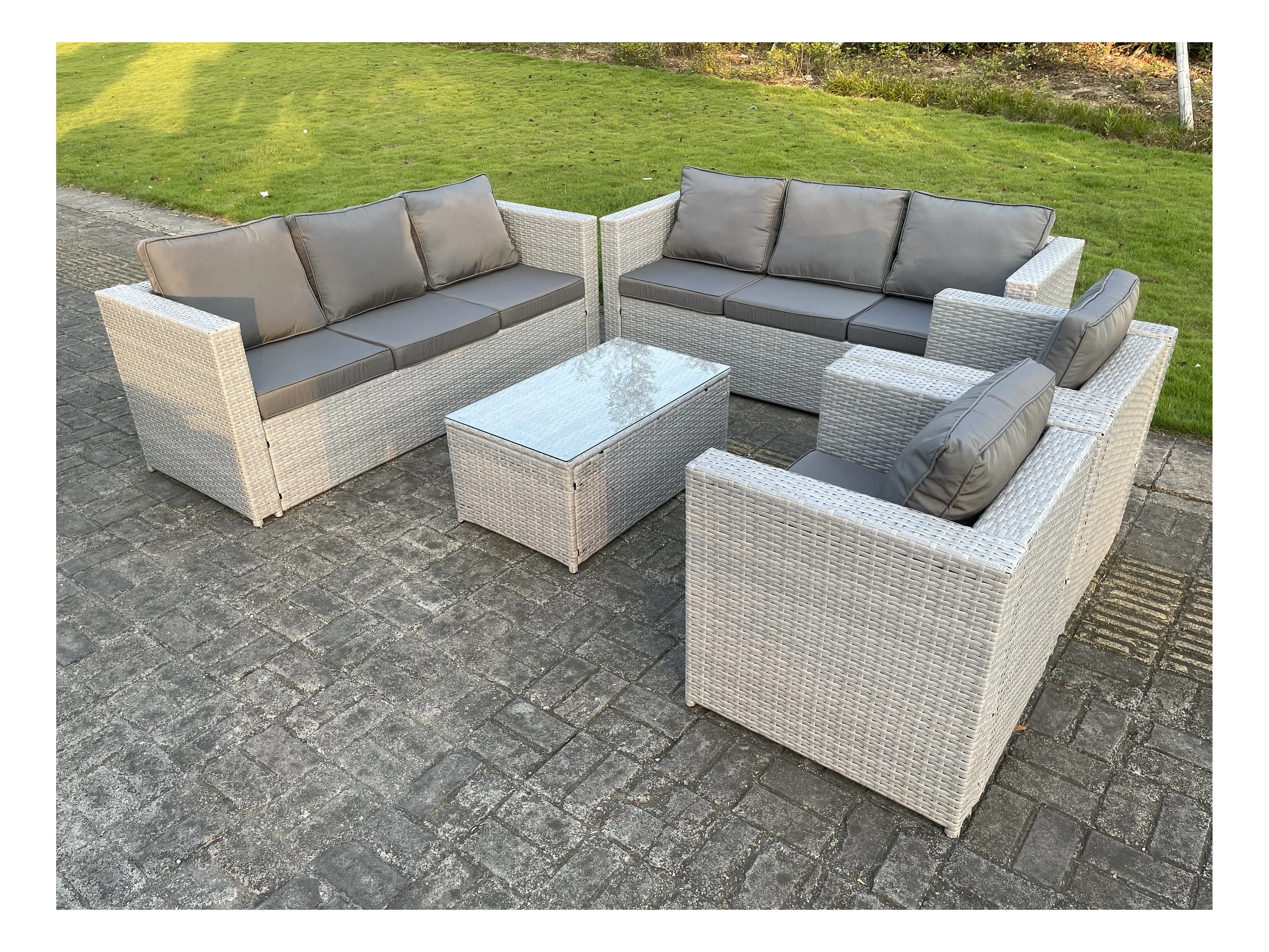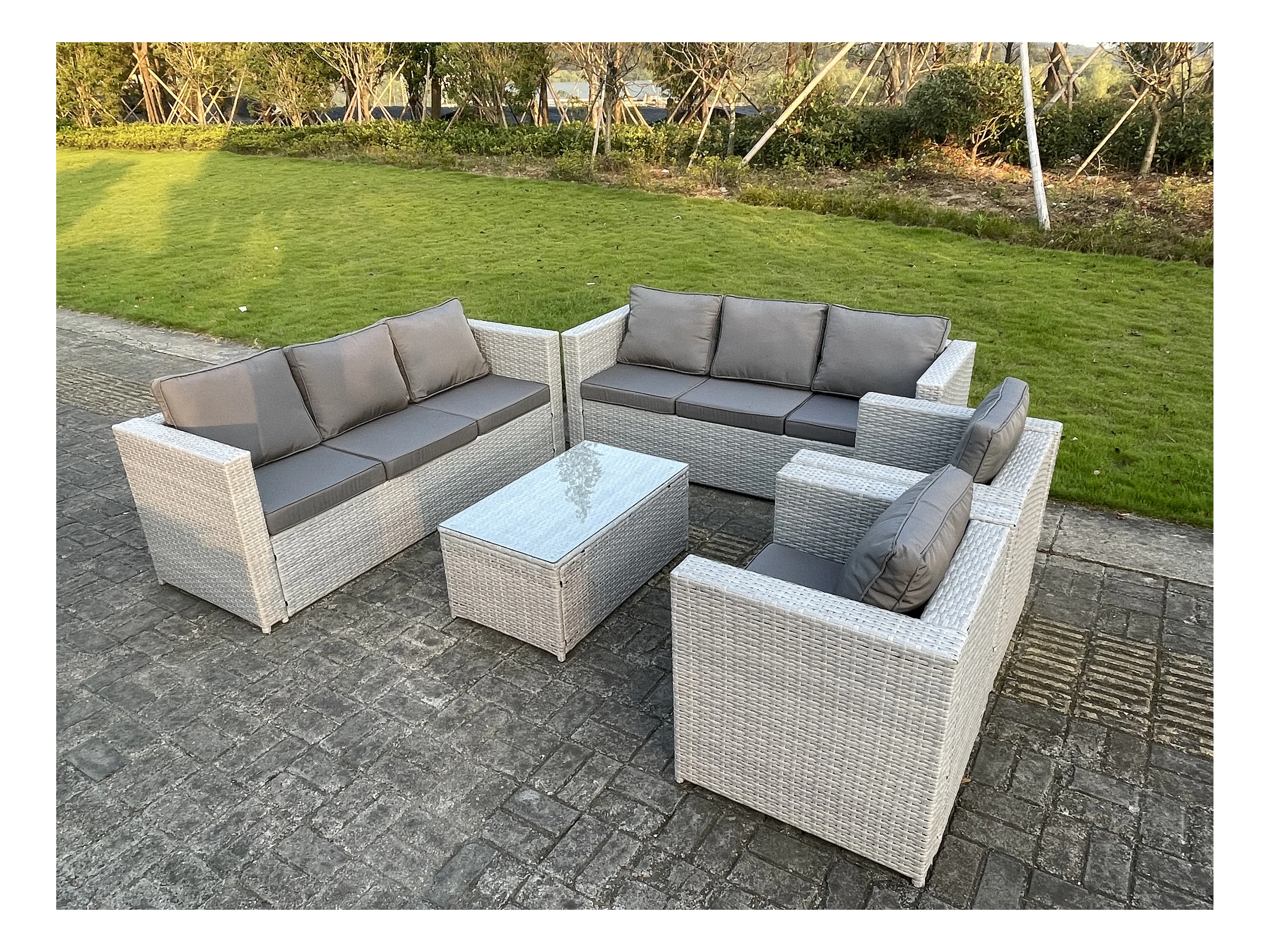 8 places Meubles de Jardin en rotin Ensemble de canapé en rotin mit Canapé à 3 places 2 Fauteuil Table basse Gris Clair