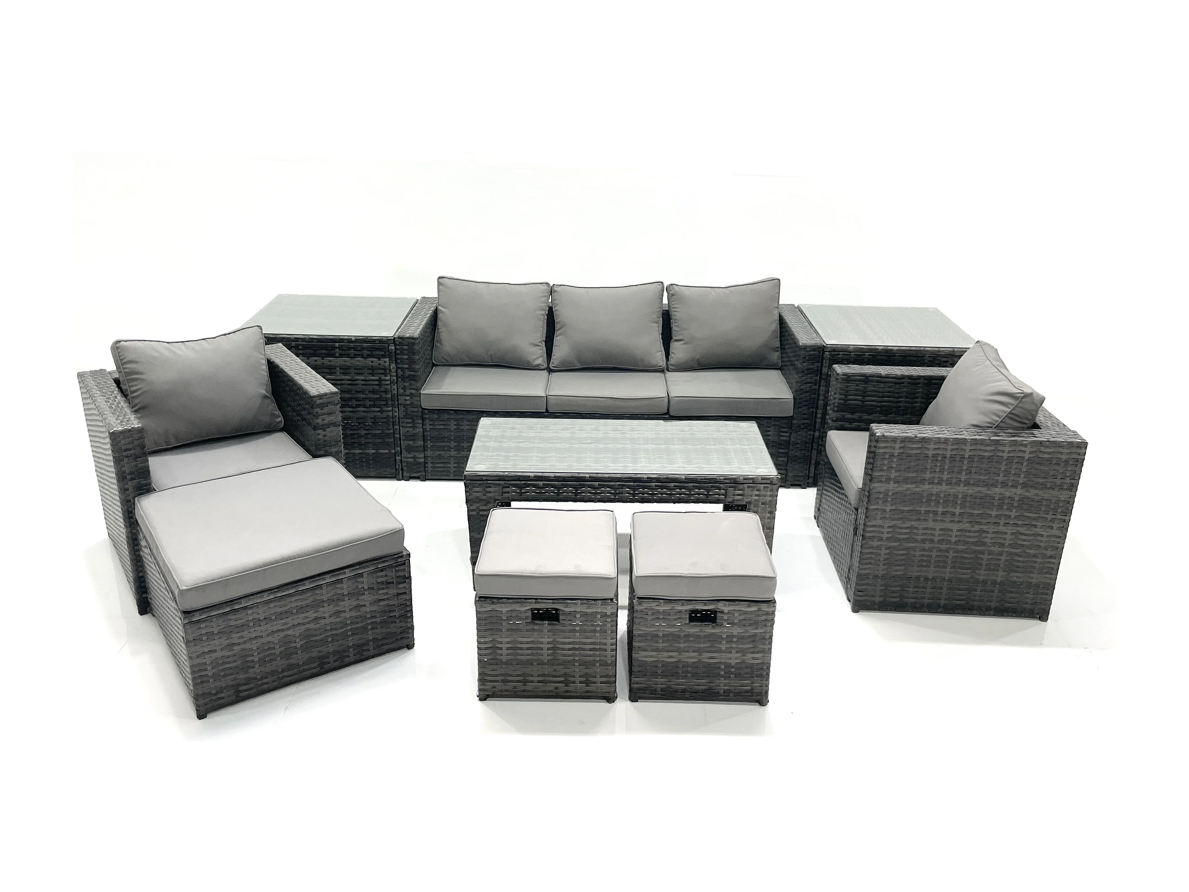 8 places Salon de jardin Ensemble de canapés en rotin avec Table basse 2 Fauteuil 3 Tabourets 2 Tables d'appoint Gris foncé mixte