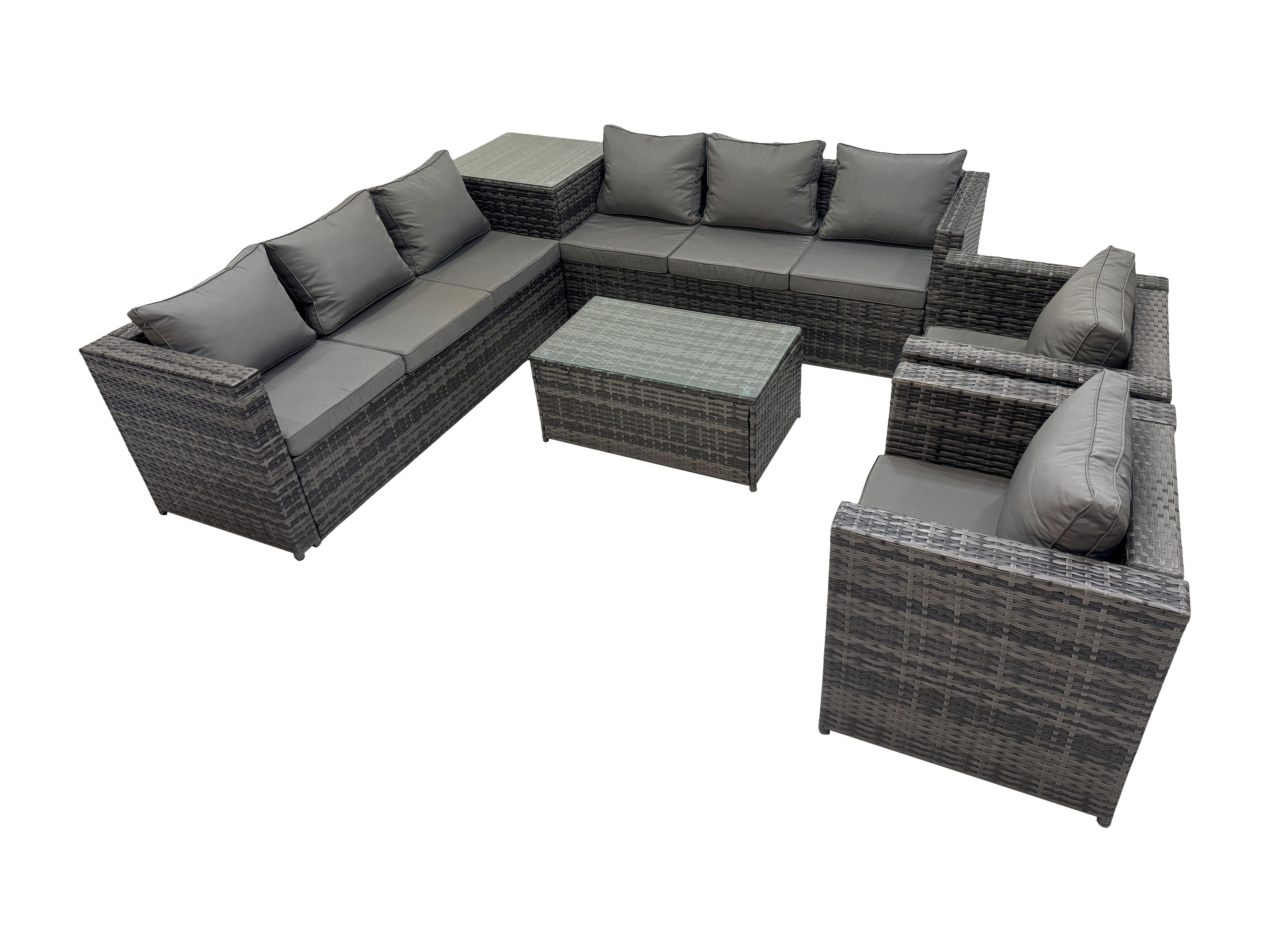 8 places Salon de jardin Lounge Fauteuil 2 Table basse Gris foncé mixte