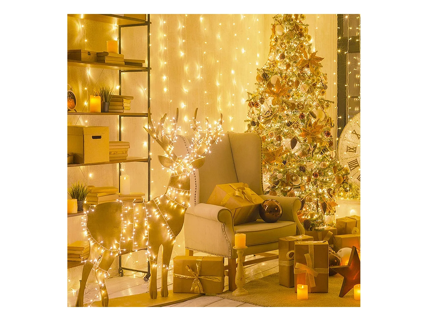 Rideau stalactite lumineux 360 LED Blanc froid 80 Tombées 8 Jeux de lumière