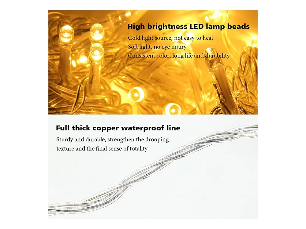 80M 800 LED Guirlande lumineuse Carnaval Mariage Extérieur Intérieur Jardin Éclairage, blanc chaud