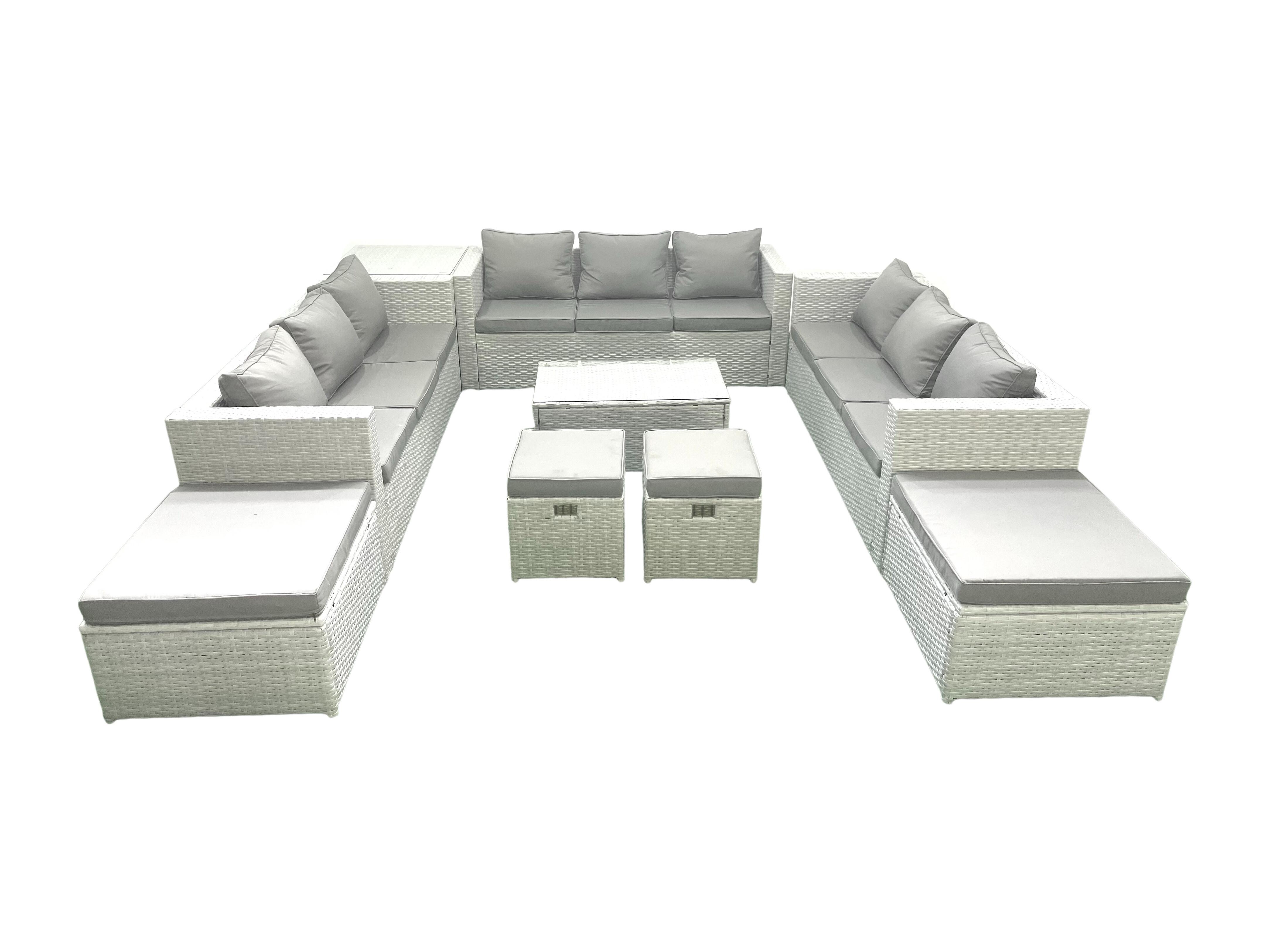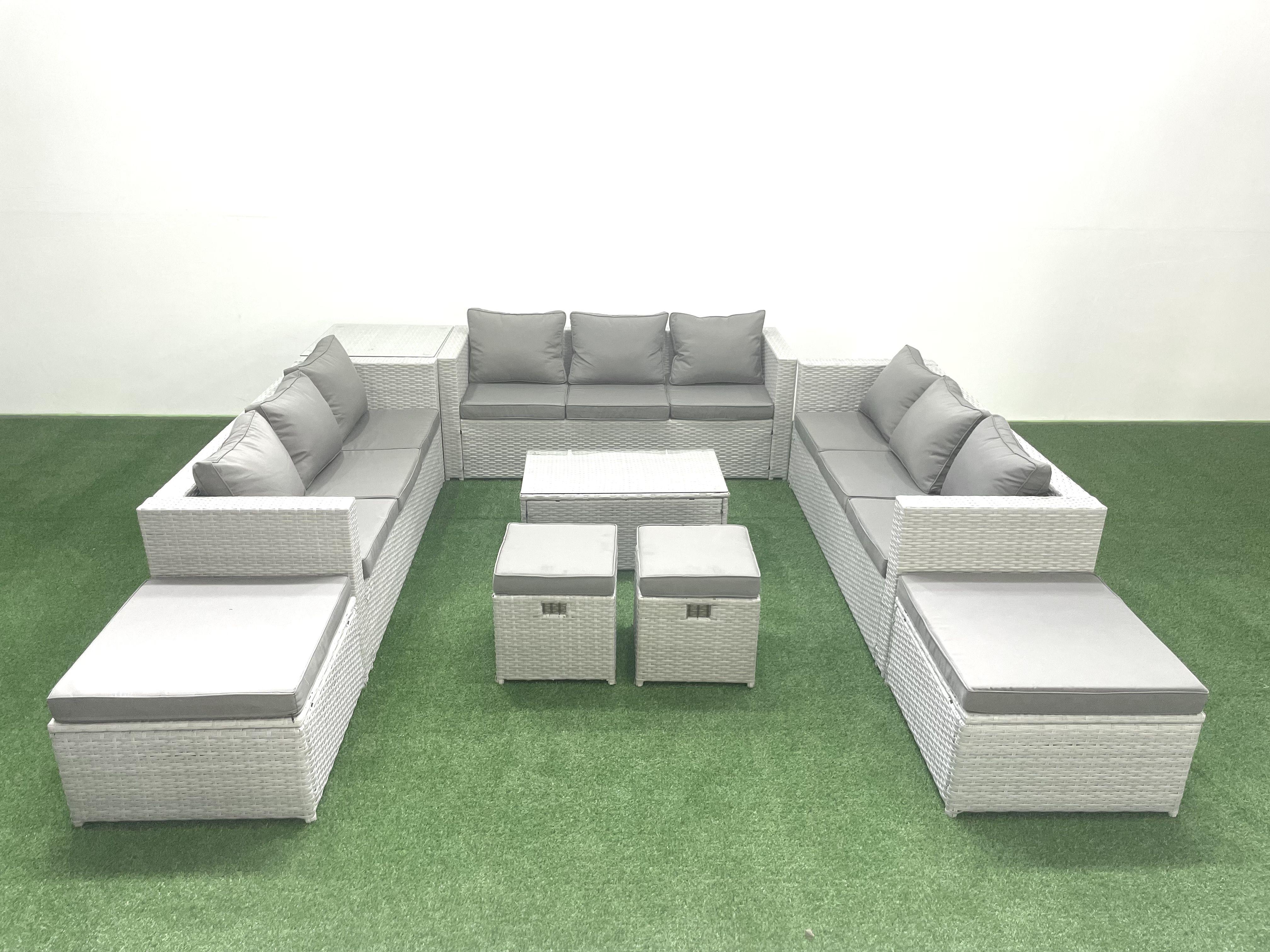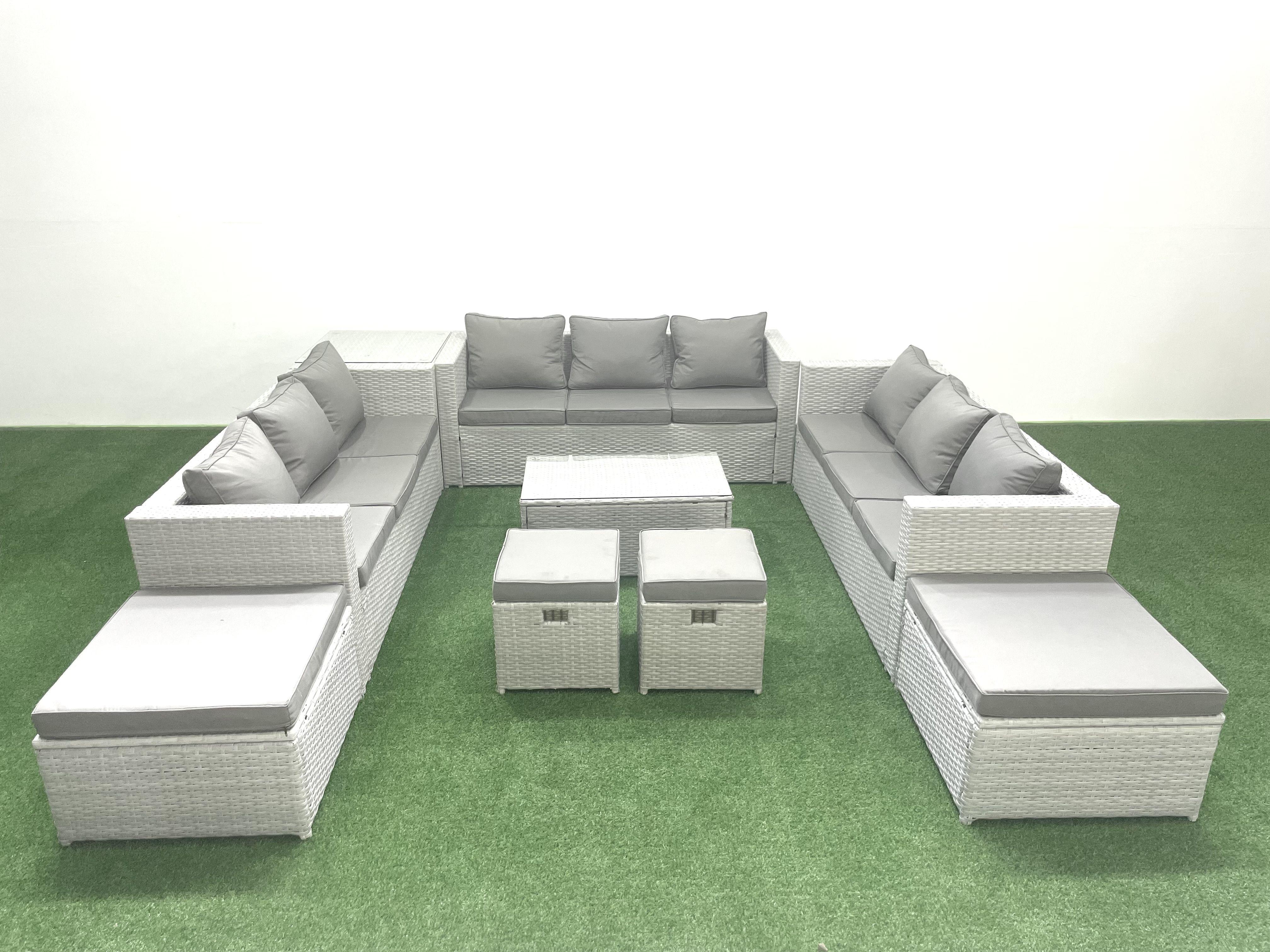 9 Pièces Salon de jardin Canapé de jardin Table basse avec Table d'appoint 4 Tabourets Gris clair mixte