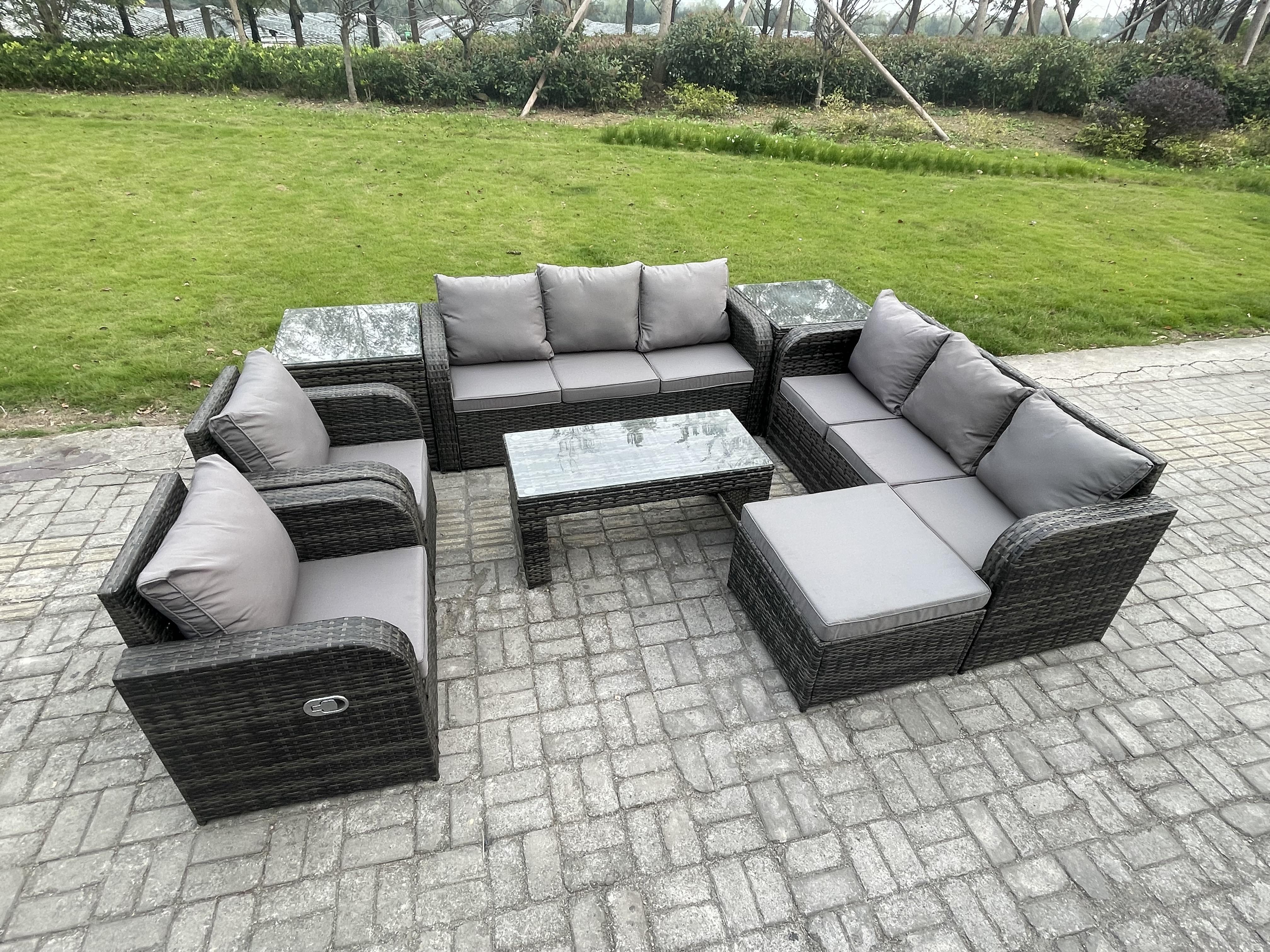 9 places Ensembles de salon de jardin avec 2 Chaise inclinables Table basse 2 Tables d'appoint Grand tabouret Gris foncé mixte