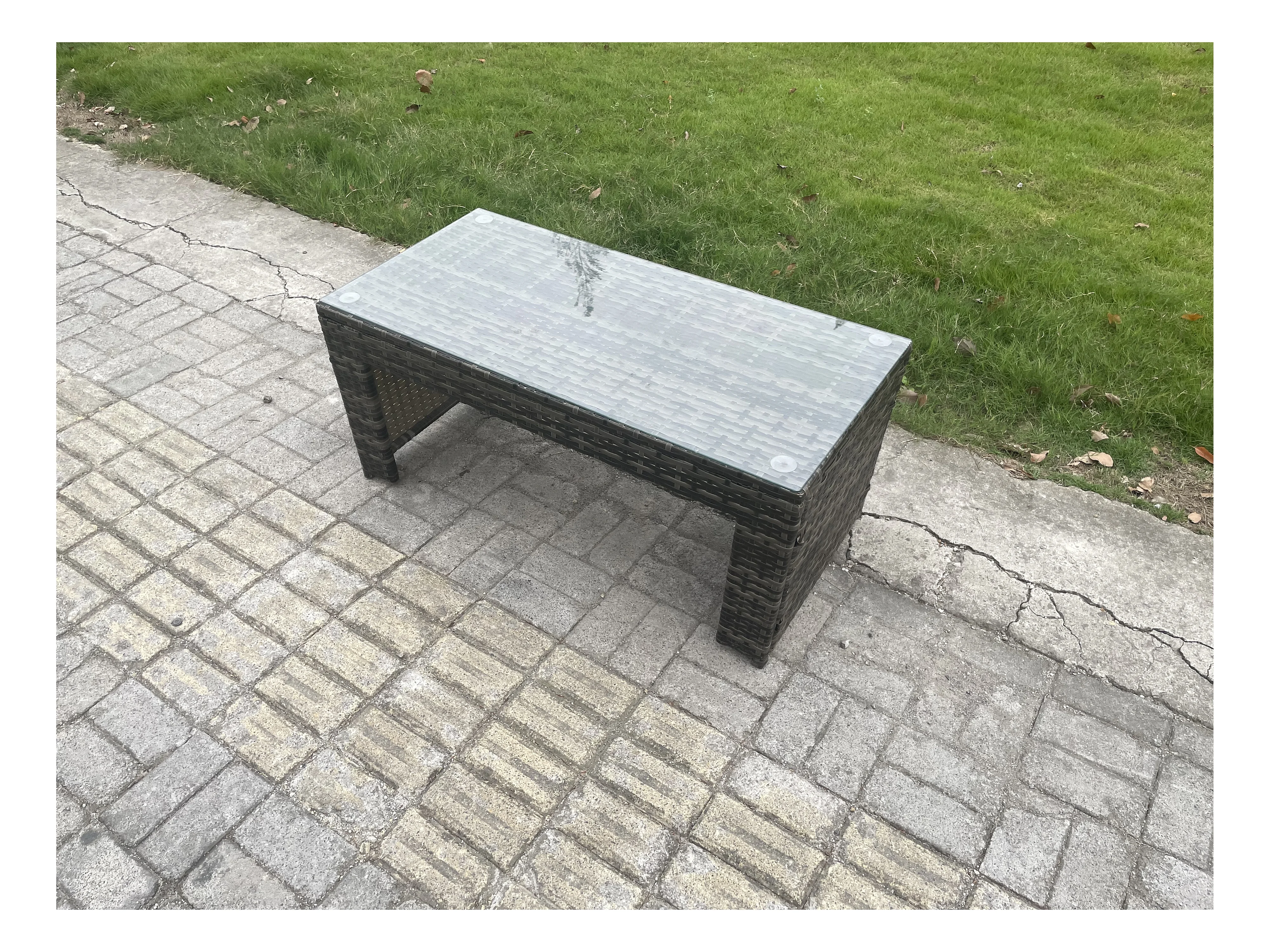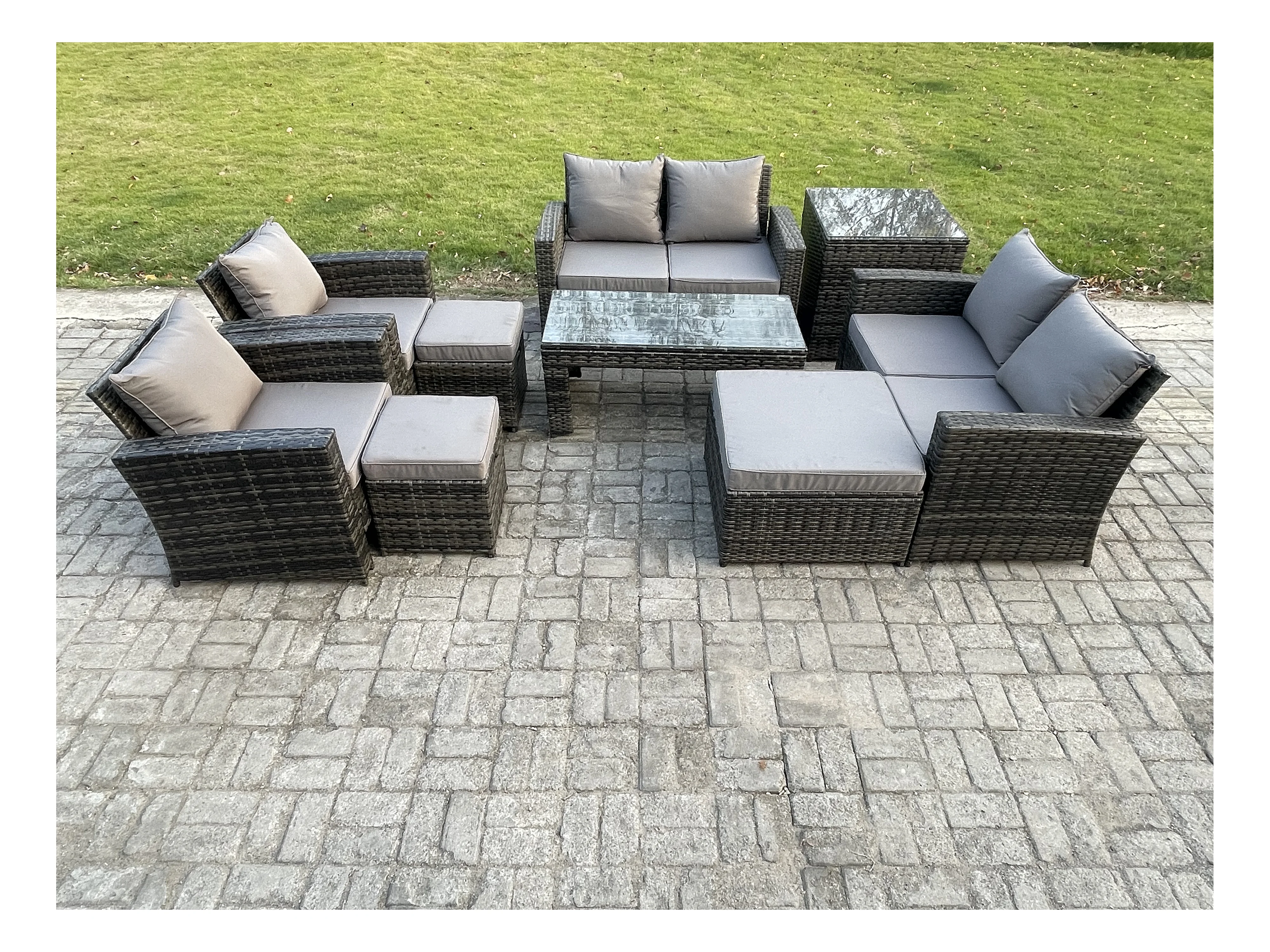 9 Places Gris foncé Ensemble de canapés en rotin Table basse ave Canapé d'amour Table d'appoint