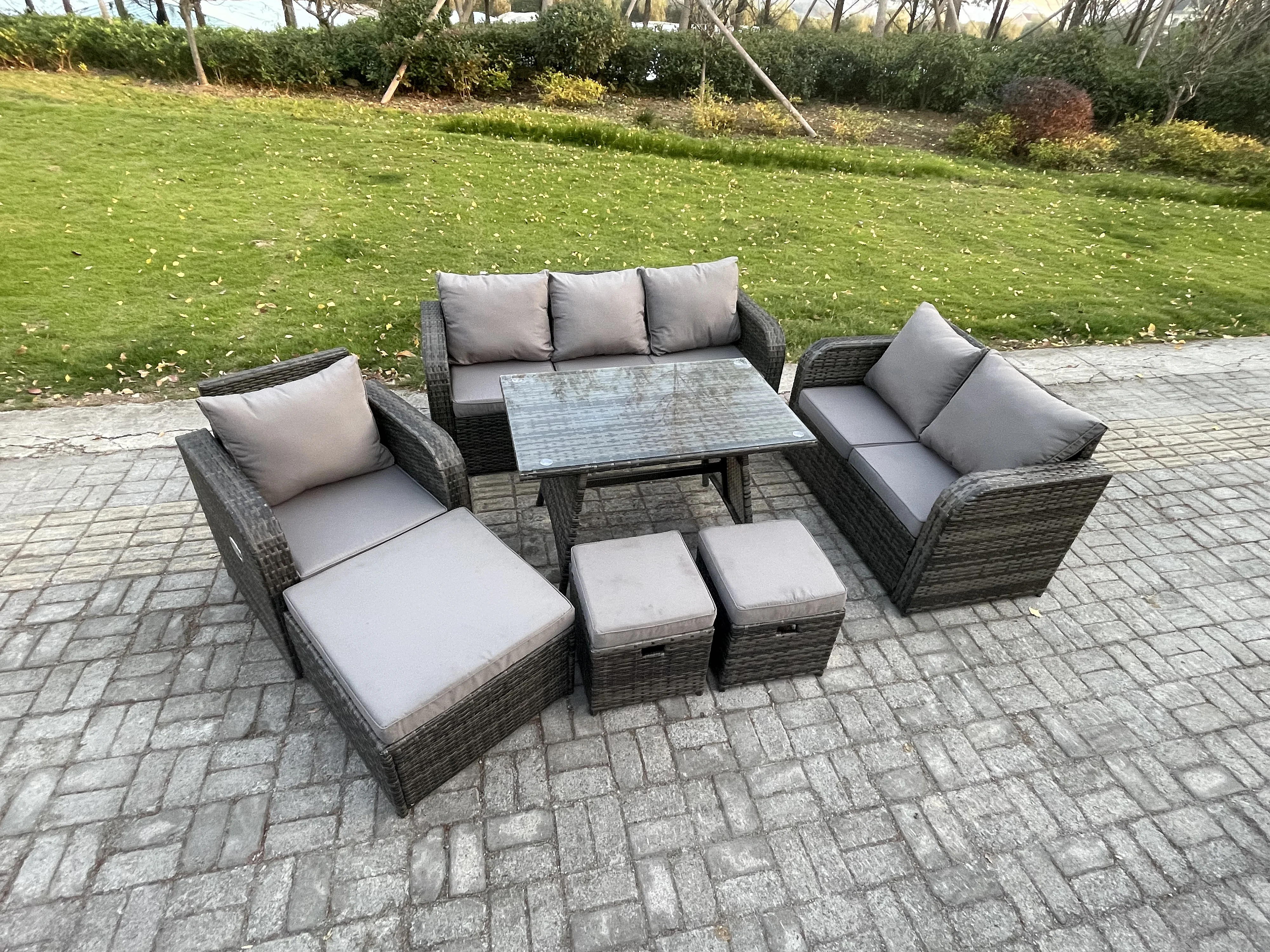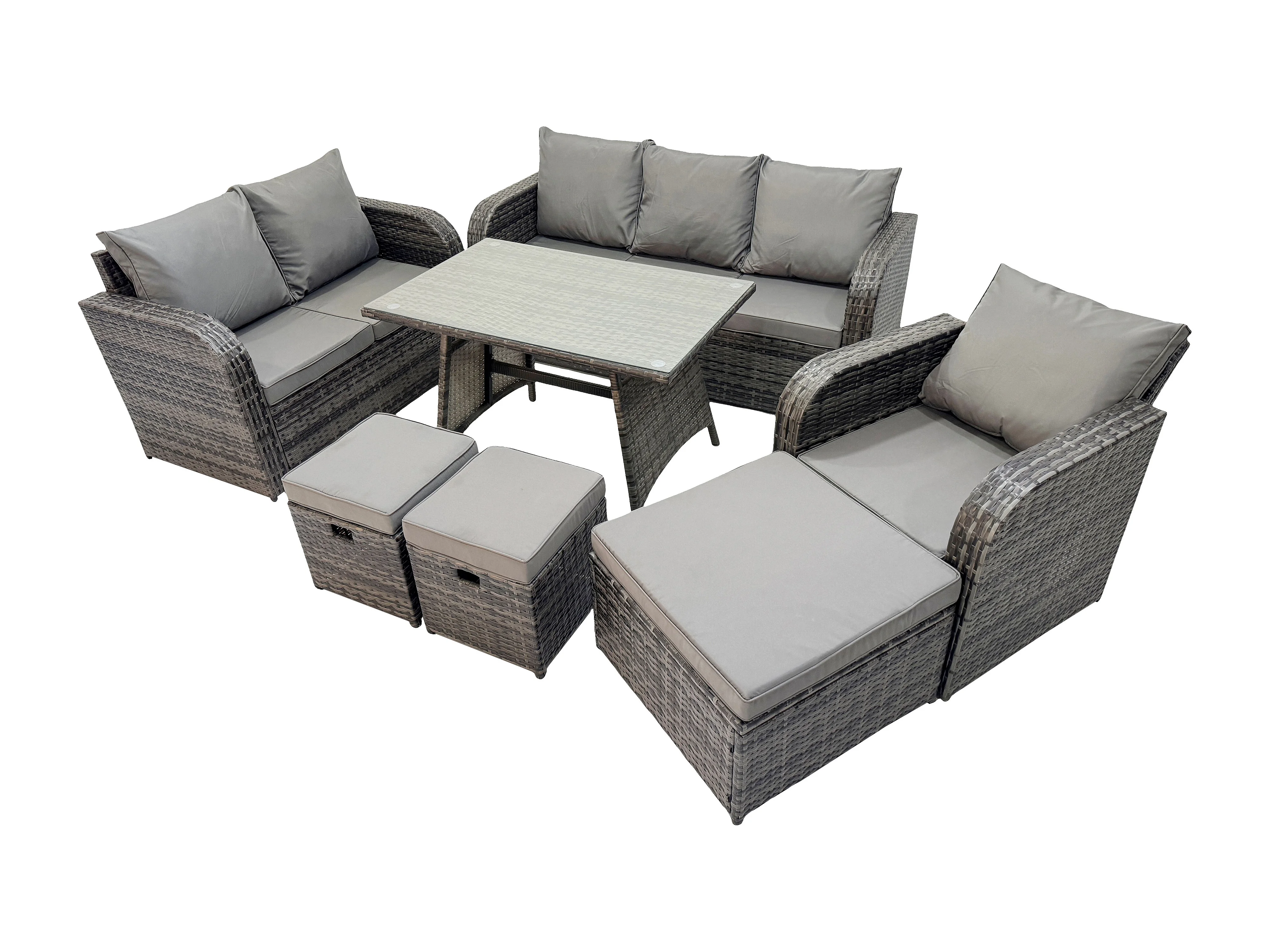 9 places Salon de jardin exterieur Ensemble de canapés en rotin avec Table à manger 3 Tabourets Gris foncé mixte