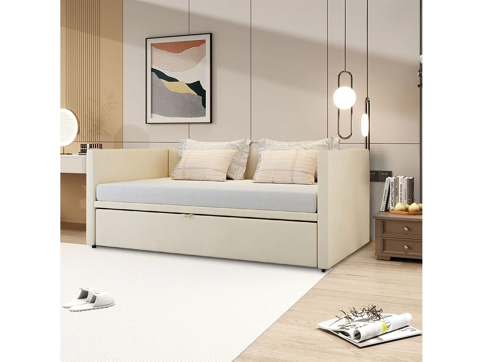 90 / 180 x 200 cm,Canapé-lit pliant - Tissu velours - Lits extensibles multifonctionnels - Beige