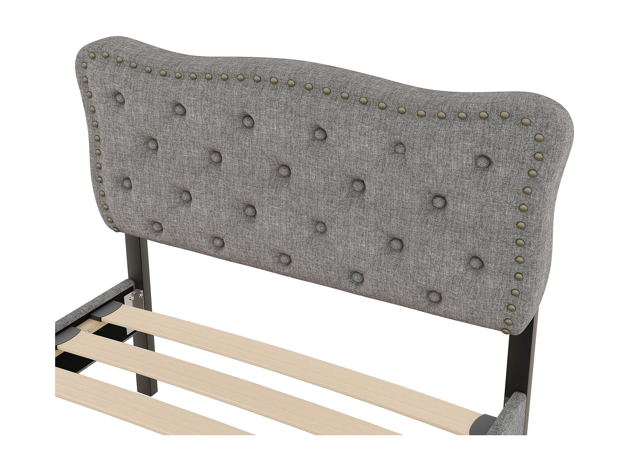 90 * 200cm lit plat, lit rembourré, tête de lit avec rivets décoratifs, double tiroir, gris