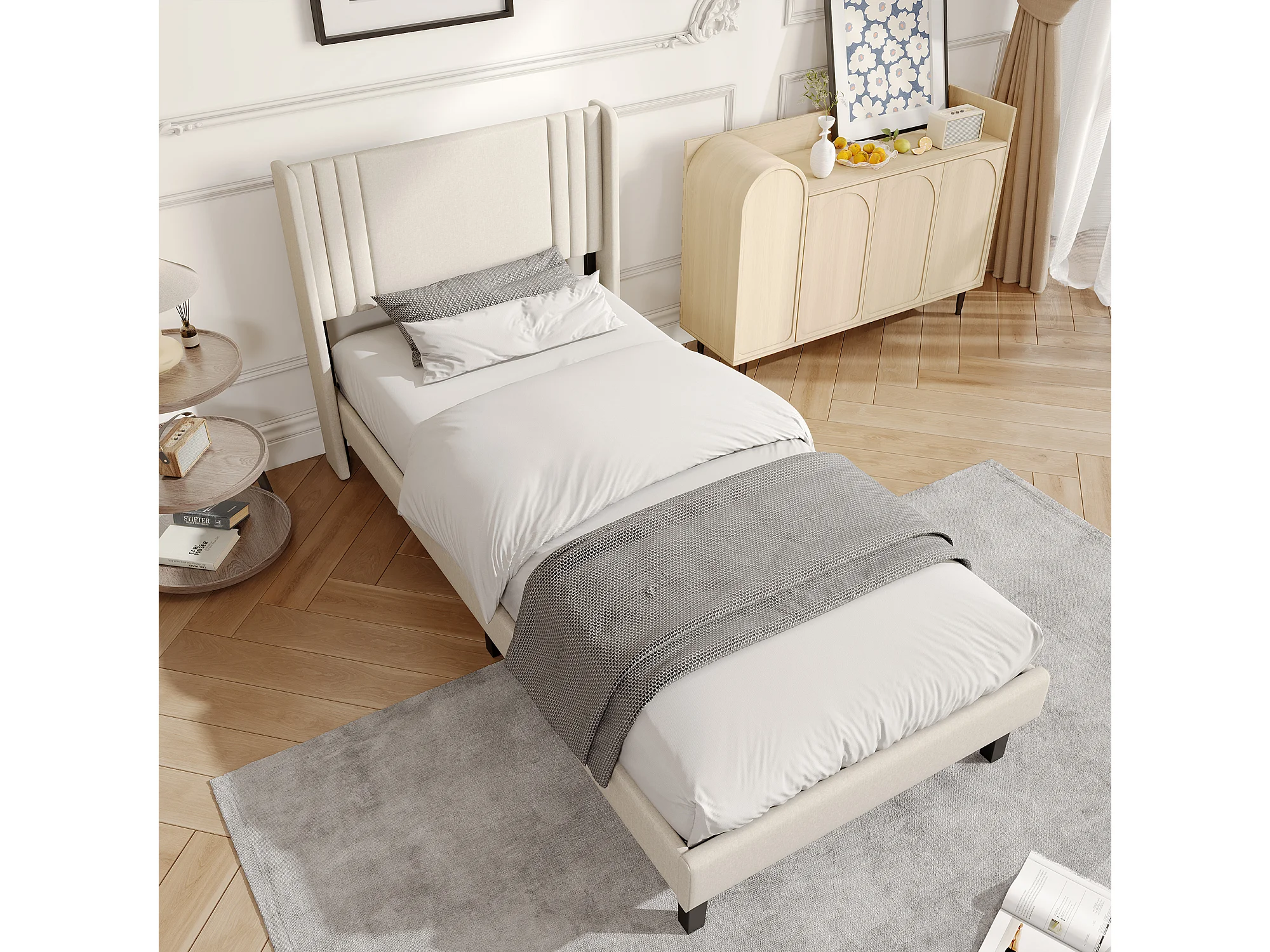 90 x 200 cm - Cadre de lit- beige - Lin - avec base à lames