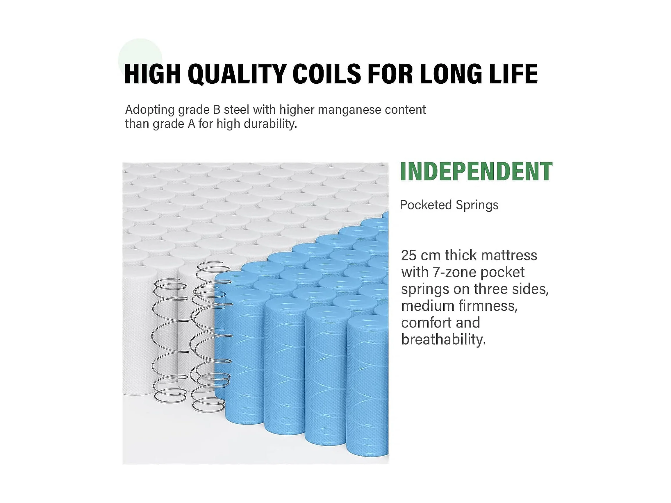 90x190x25 Matelas Ressorts ensachés et sommier Ensemble, de Forme et Ressorts+Sommier Hauteur du Cadre de lit 29 cm