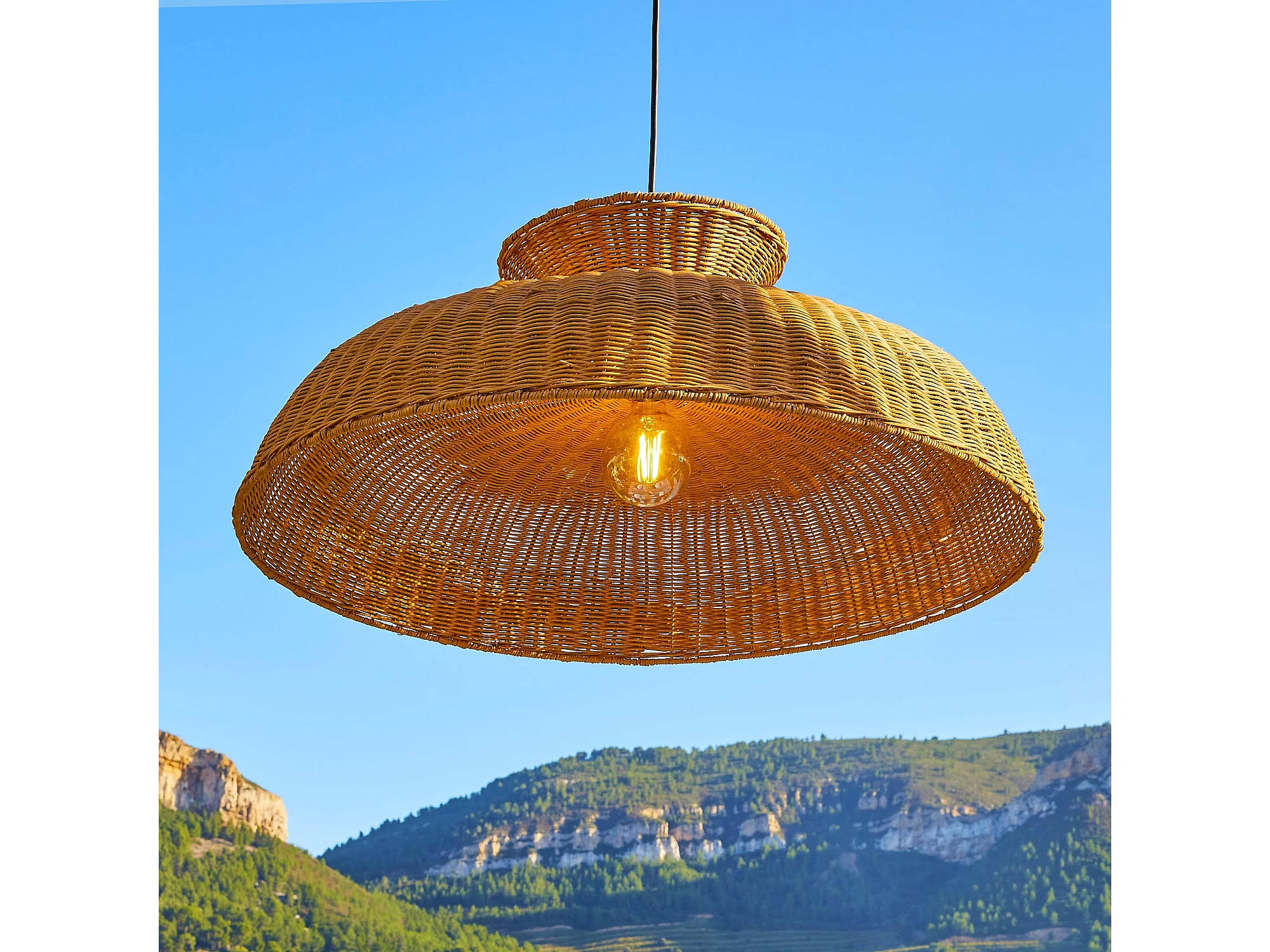 Suspension Extérieure Rotin Beige H38cm Câble 5m