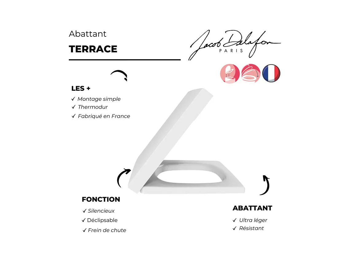 Abattant JACOB DELAFON Terrace, descente progressive et déclipsable, Blanc