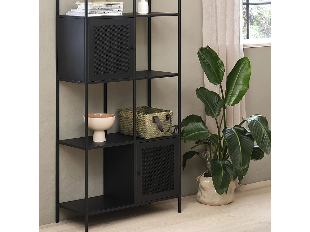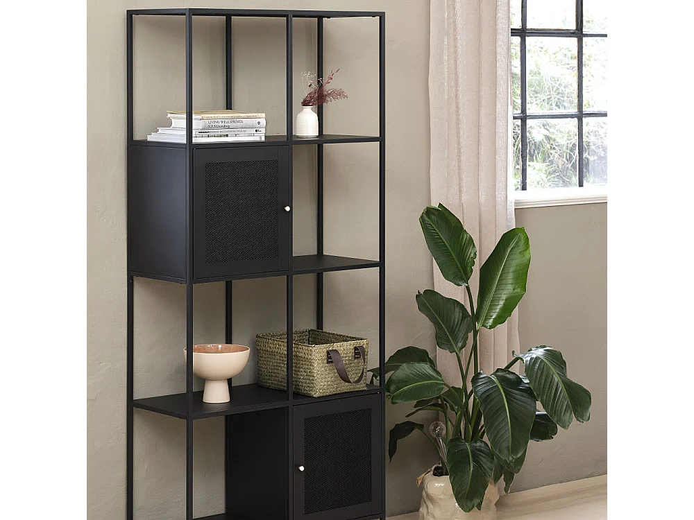 Abel - Bibliothèque 2 portes, 6 niches en métal H180cm - Noir