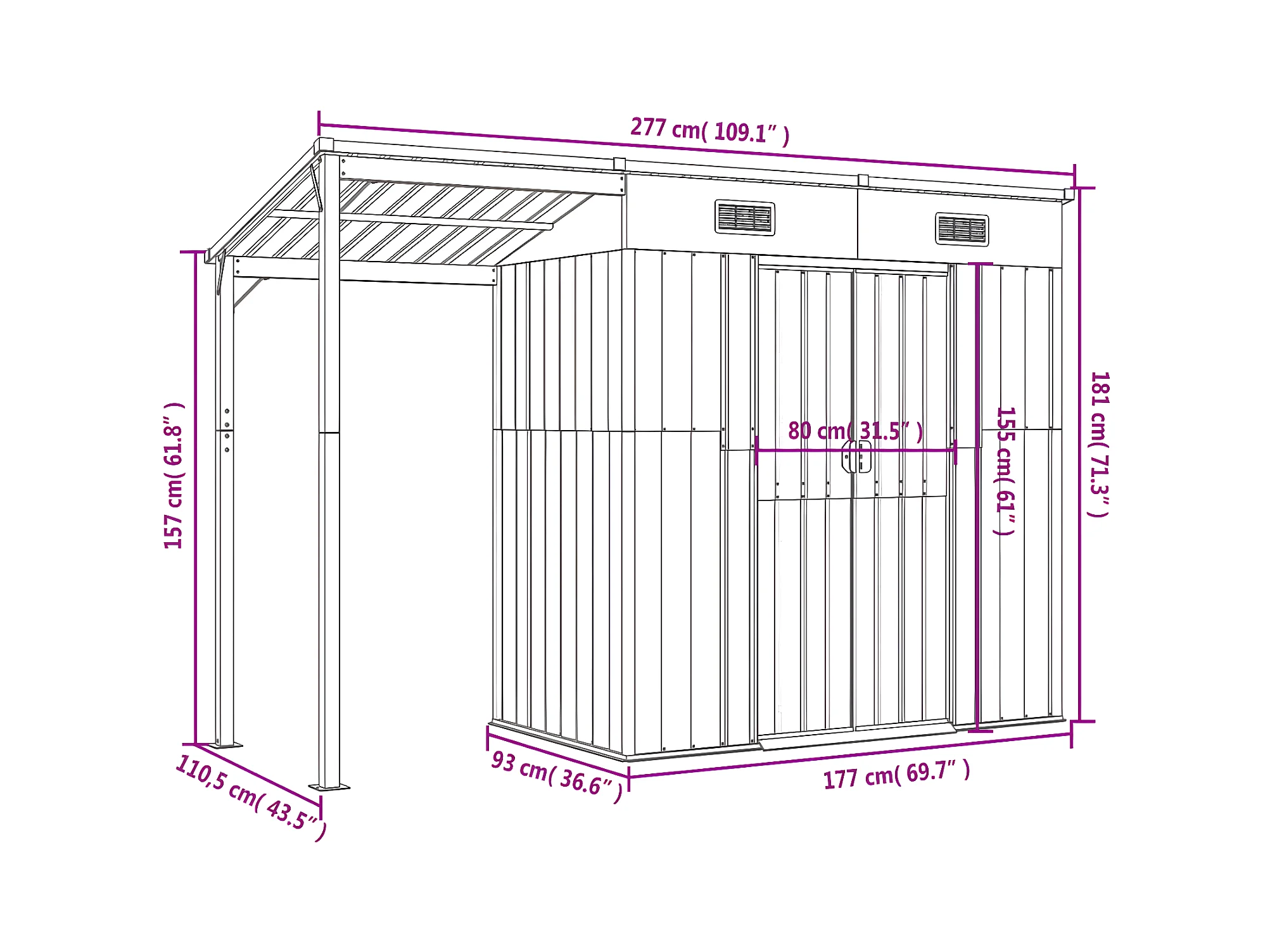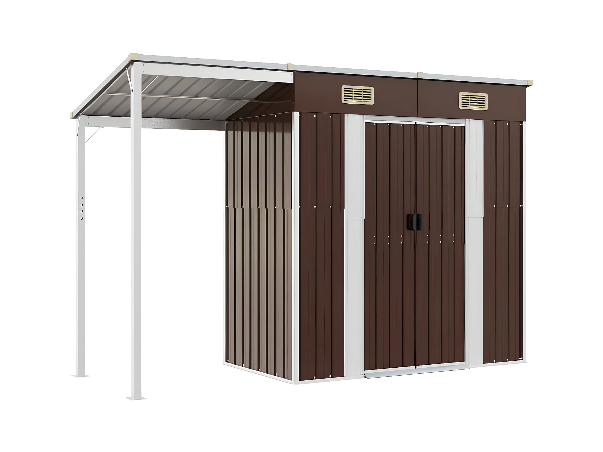 Abri de jardin avec toit prolongé marron 277x110,5x181 acier