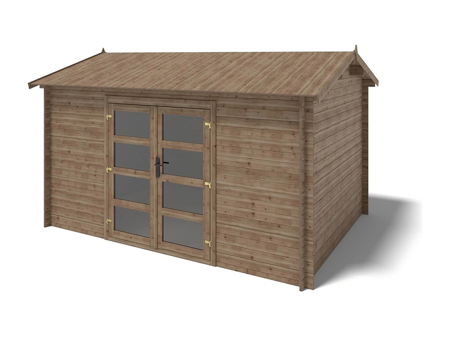 Abri de jardin en bois - 12m2 - 4x3m - Traité - Ep. 28mm - Couleur: marron - DOM677 - ALTANKA