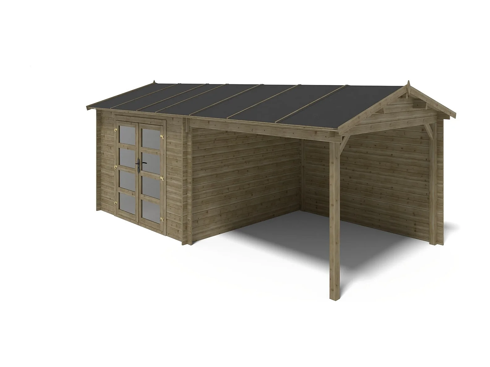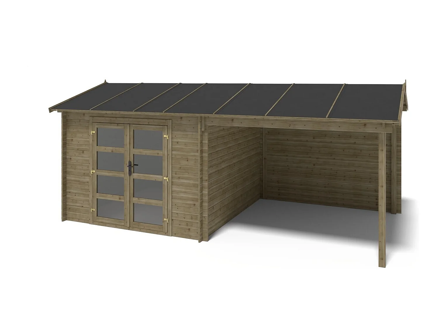 Abri de jardin en bois - 17.4m2 - 5.79x3m - Traité - Ep. 28mm - Couleur: vert - DOM718 - ALTANKA