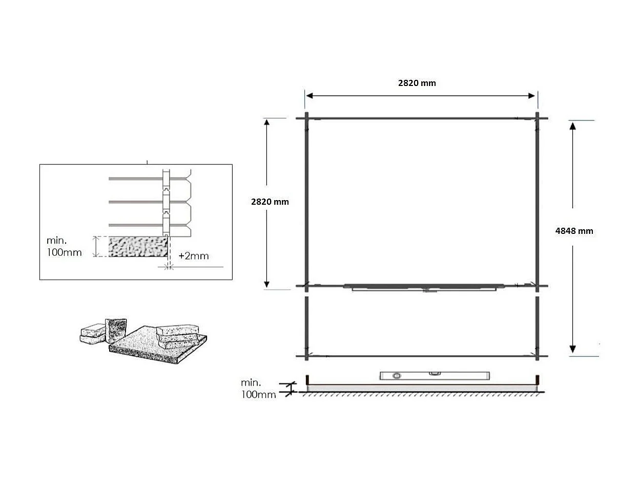 Abri de jardin en bois - 3x3 m + terrasse avec balustrade et avant-toit en bois - 15 m2 - Traité - DOM427+DOM146+DOM147+POD05 - ALTANKA