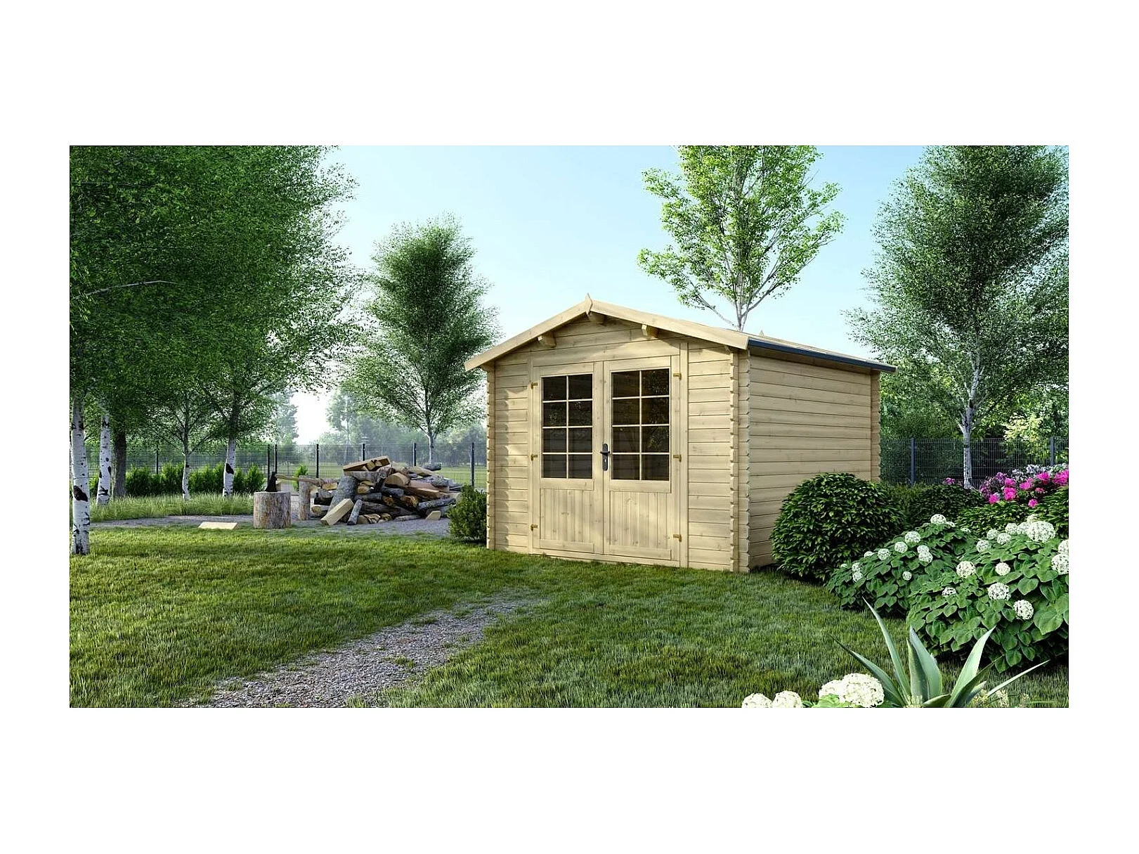 Abri de jardin en bois - 9m2 - 3x3m - Ep. 28mm - Couleur: naturel - DOM530 - ALTANKA