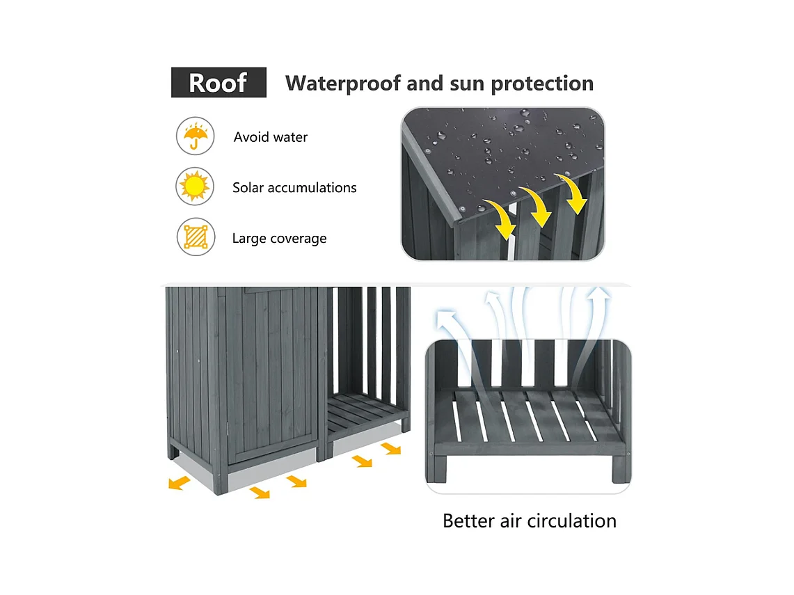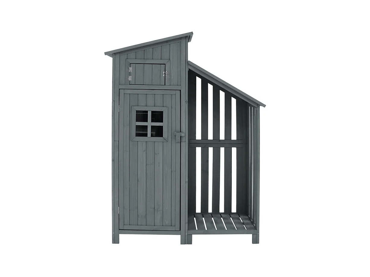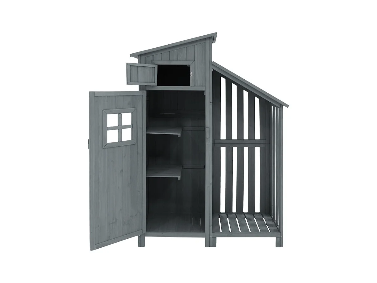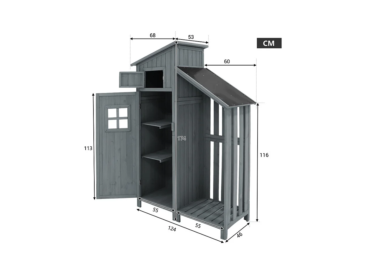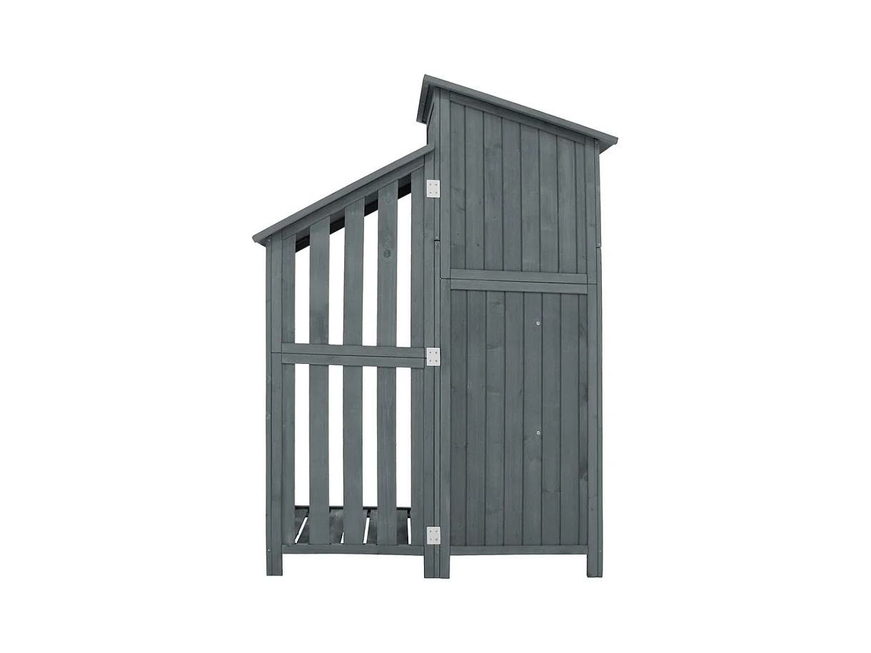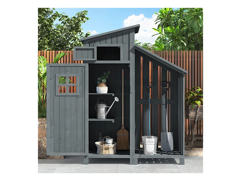 Abri de jardin en bois de sapin - remise à outils avec 2 étagères intégrées - H 173 cm - toit imperméable en PVC - Gris