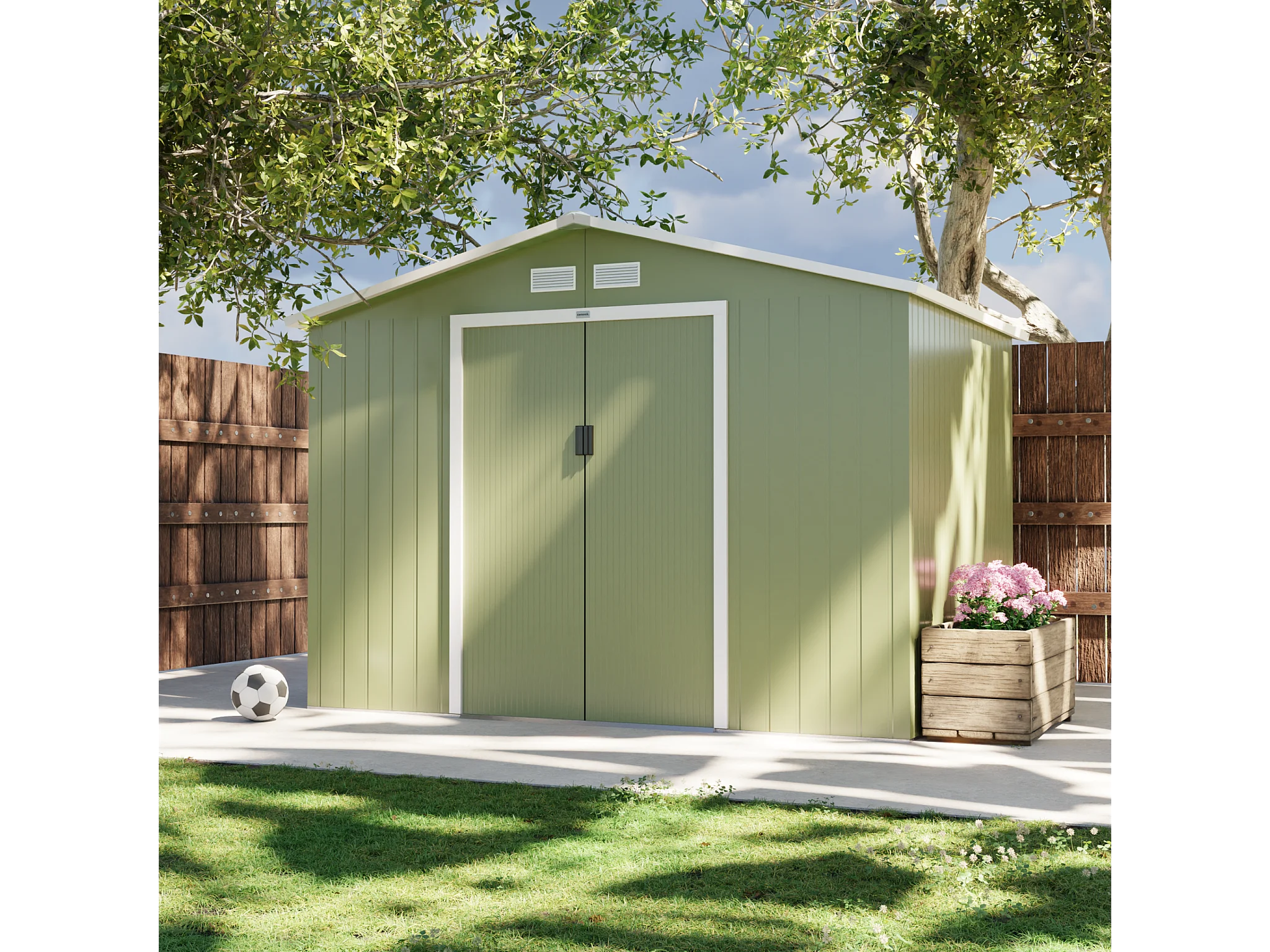 Abri de jardin en métal - FERRAIN 5.29m² vert et blanc - Cabane à outils avec deux grandes portes coulissantes. kit de fixation sol inclus. maison de rangement.
