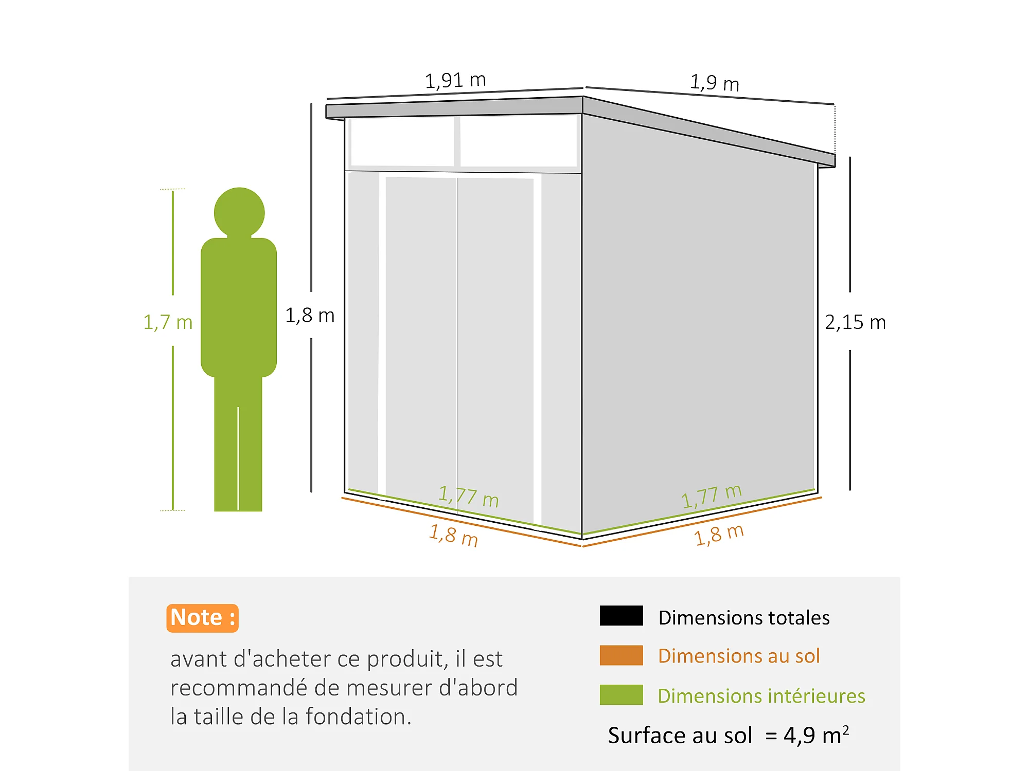 Abri de jardin en polypropylène 3,24 m² - 190 x 191 x 215 cm - 2 fenêtres, 2 portes - gris