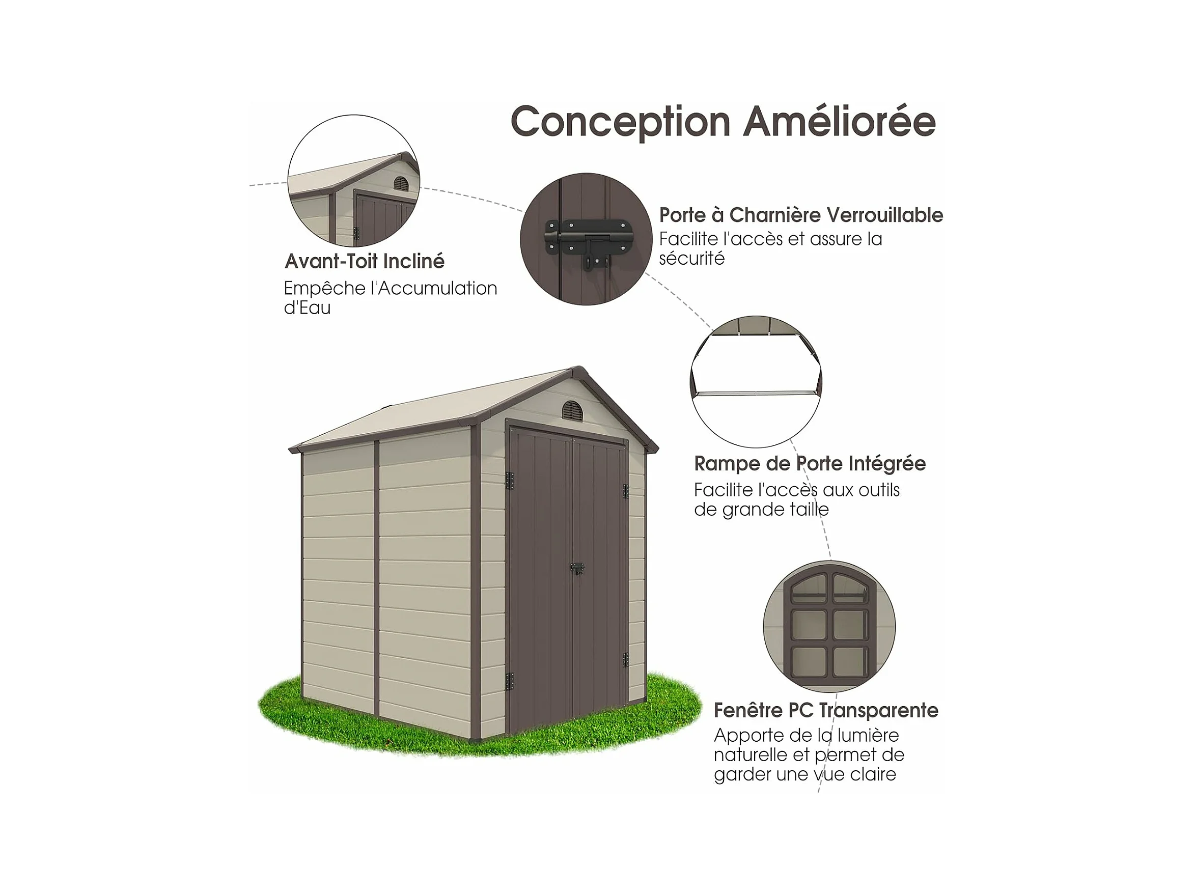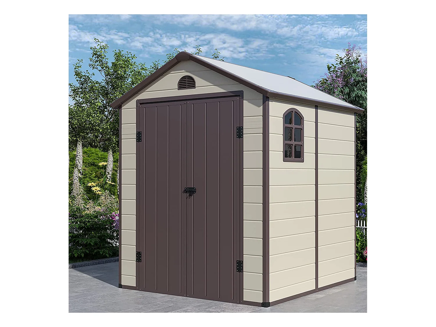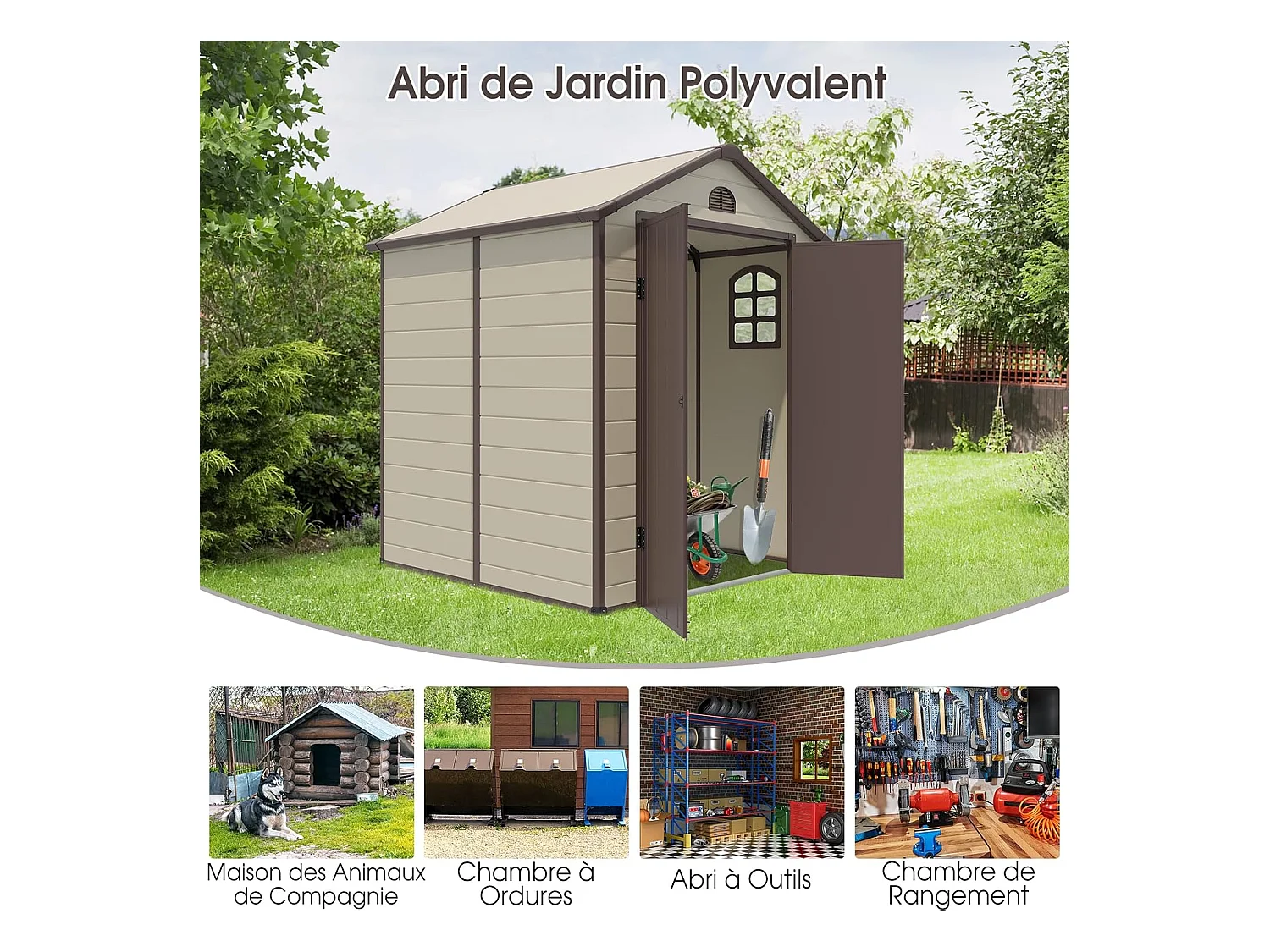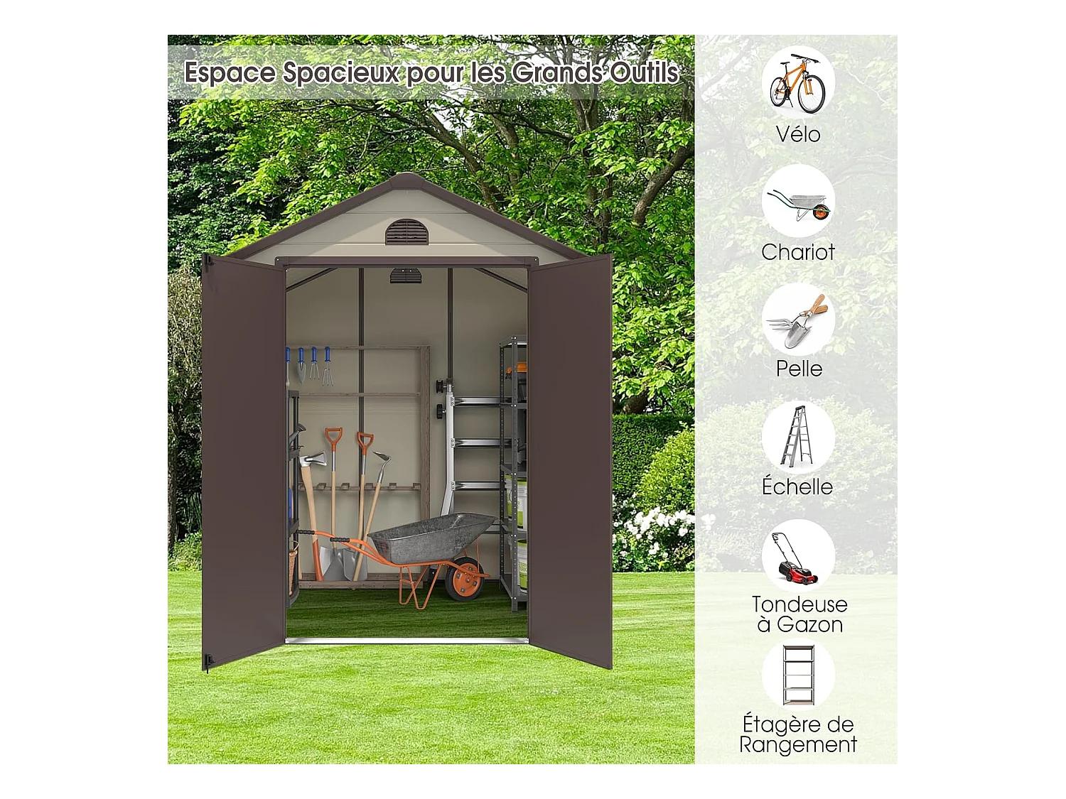 Abri de Jardin Métal 8.3m³ 192,5 x 191 x 227 cm avec 2 Porte à Charnières Aérations,2 Fenêtres