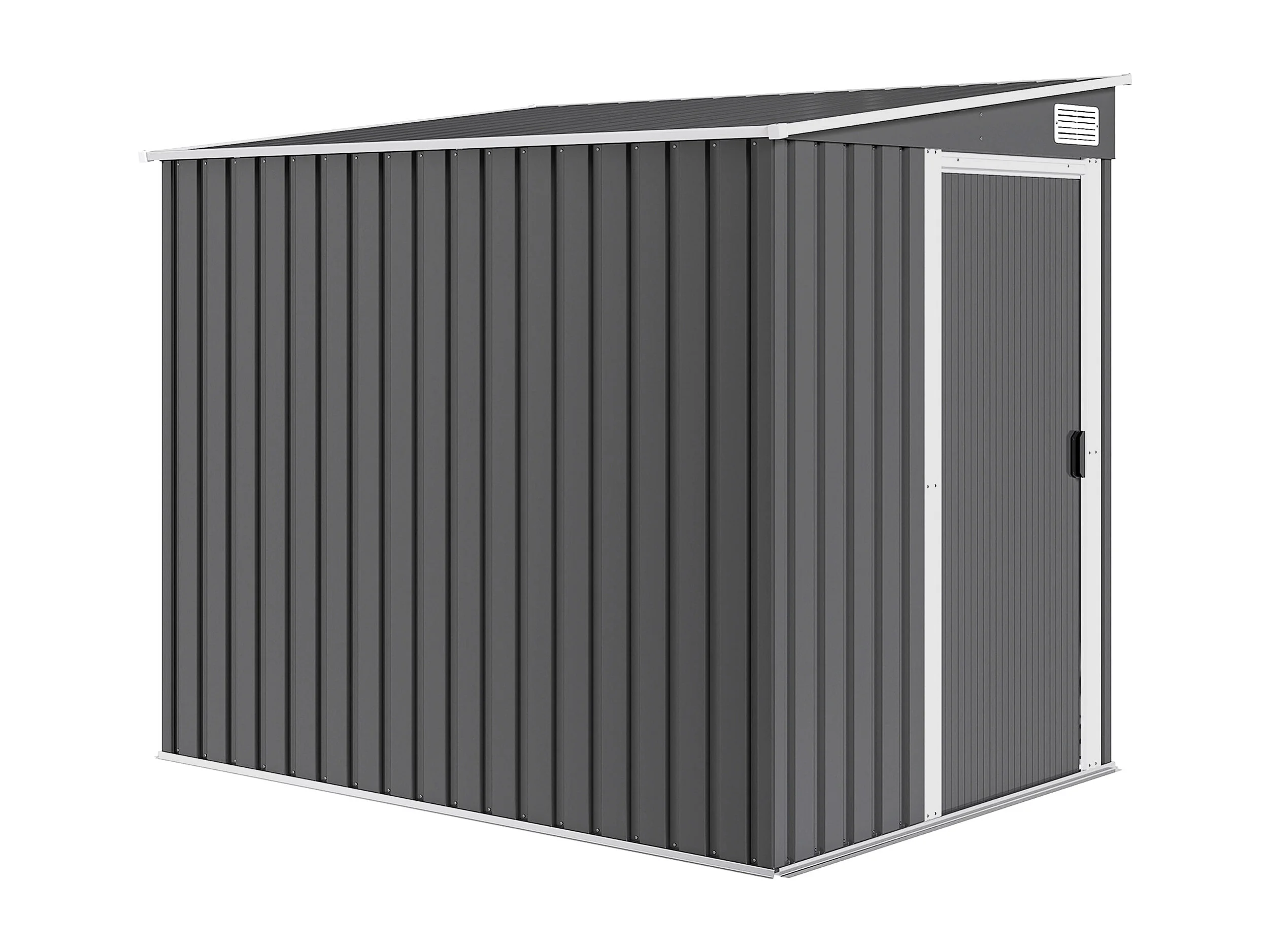 Abri de jardin métal cabanon 2,81 m² dim. 2,06x1,54x1,6/1,81Hm - porte, 2 étagères, 2 crochets, fondation incluse - acier gris