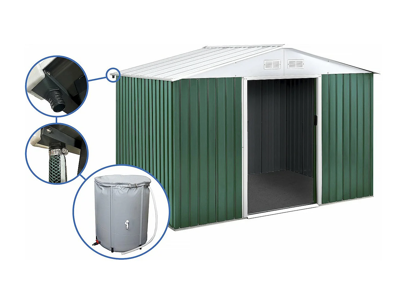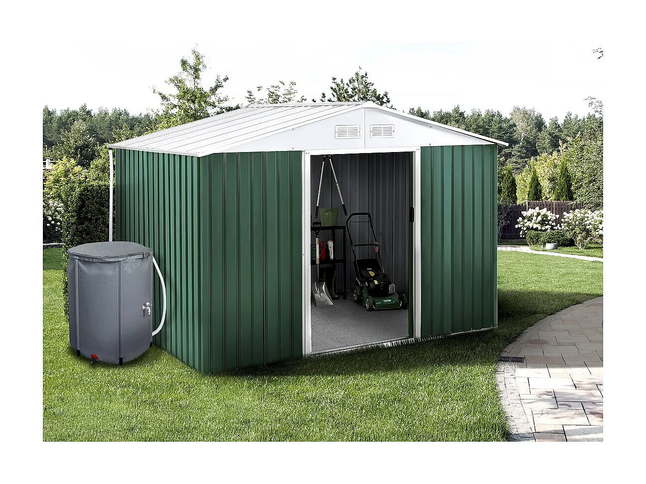 Abri de jardin métal - "Rosas " - 7,06 m² avec récupérateur d'eau et gouttière - Vert