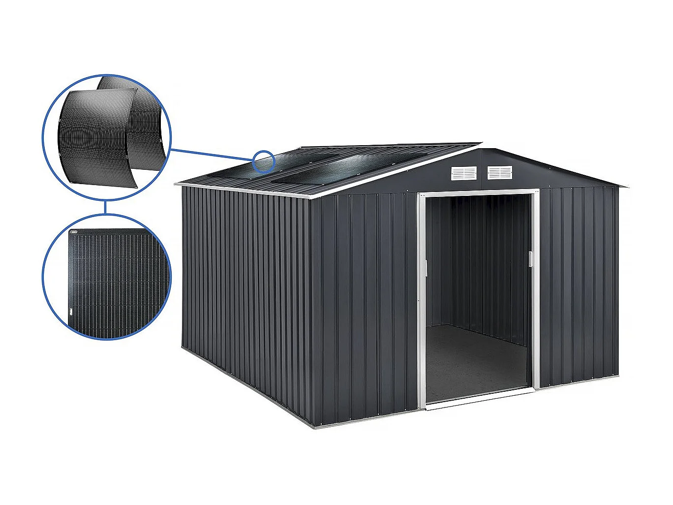 Abri de jardin métal - "Vegas"- 15 m² avec panneaux solaires - Gris