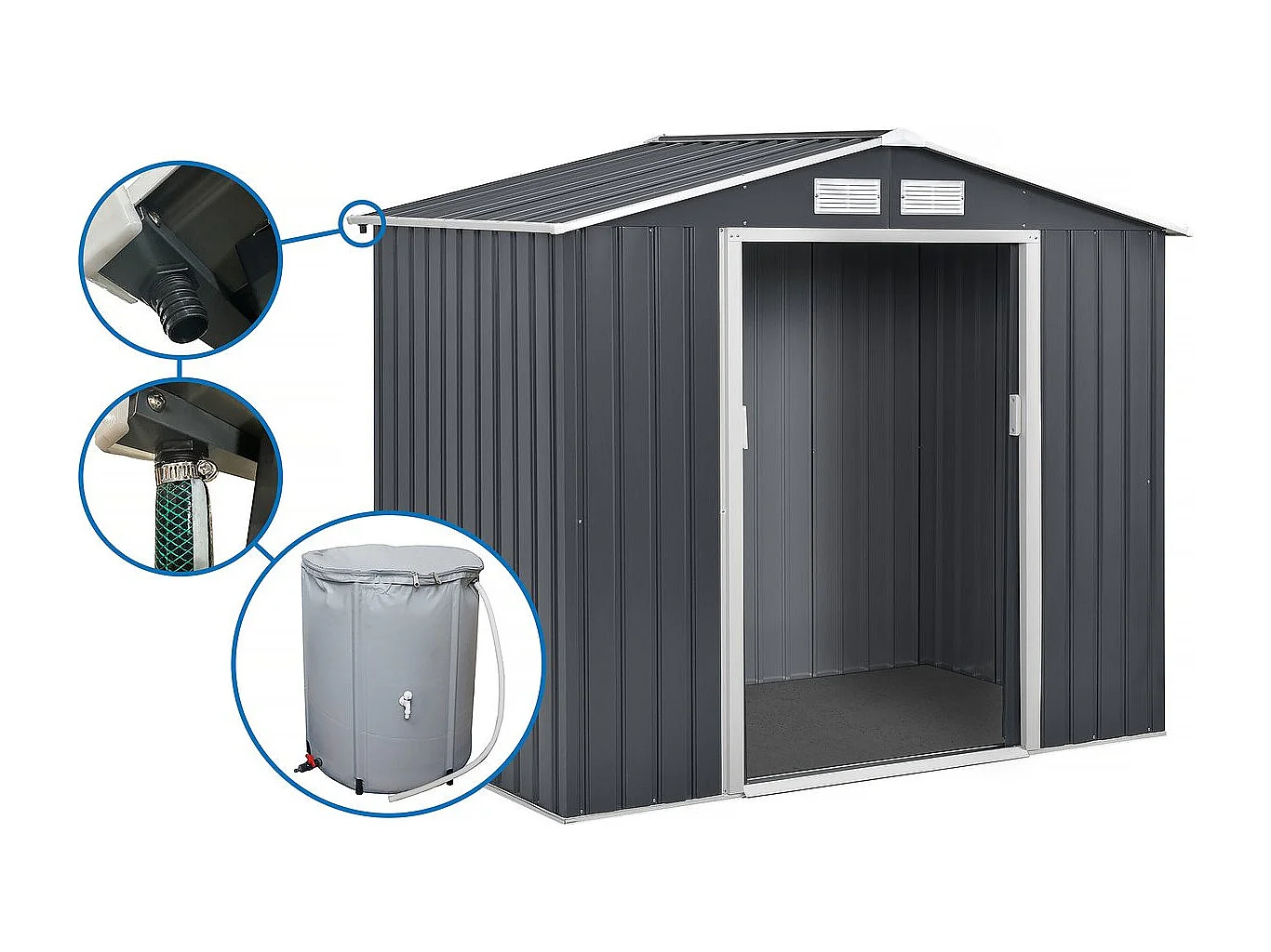 Abri de jardin métal "Vegas" avec gouttière et récupérateur d'eau - 5.29 m²