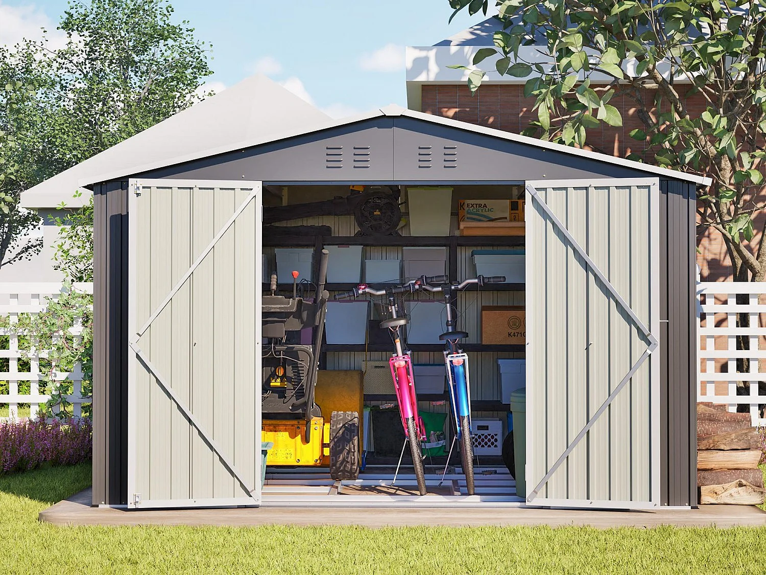 Abri de jardin métallique 240 x 120 cm – acier galvanisé, abri de rangement extérieur compact avec porte coulissante et ventilation