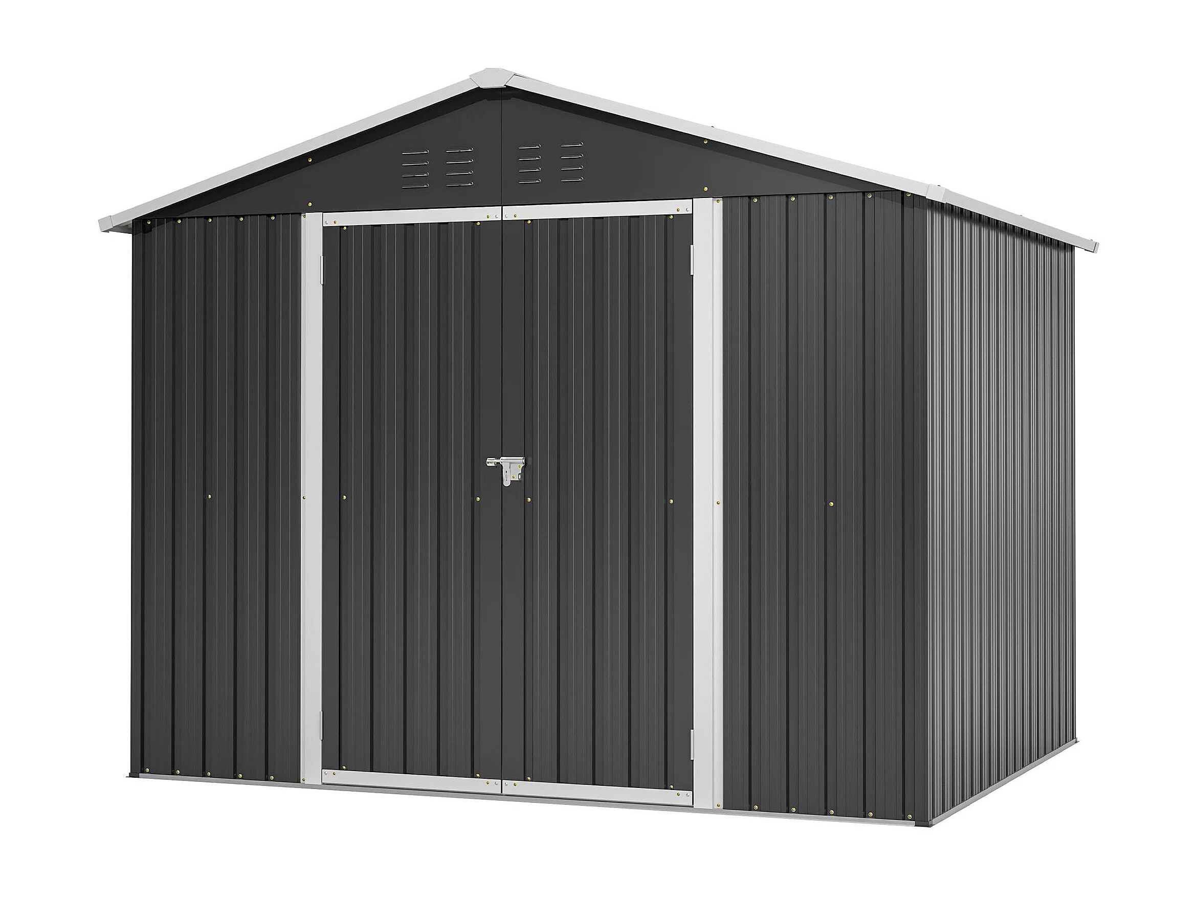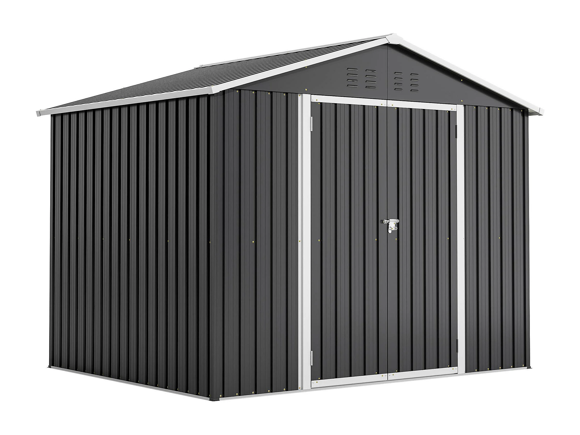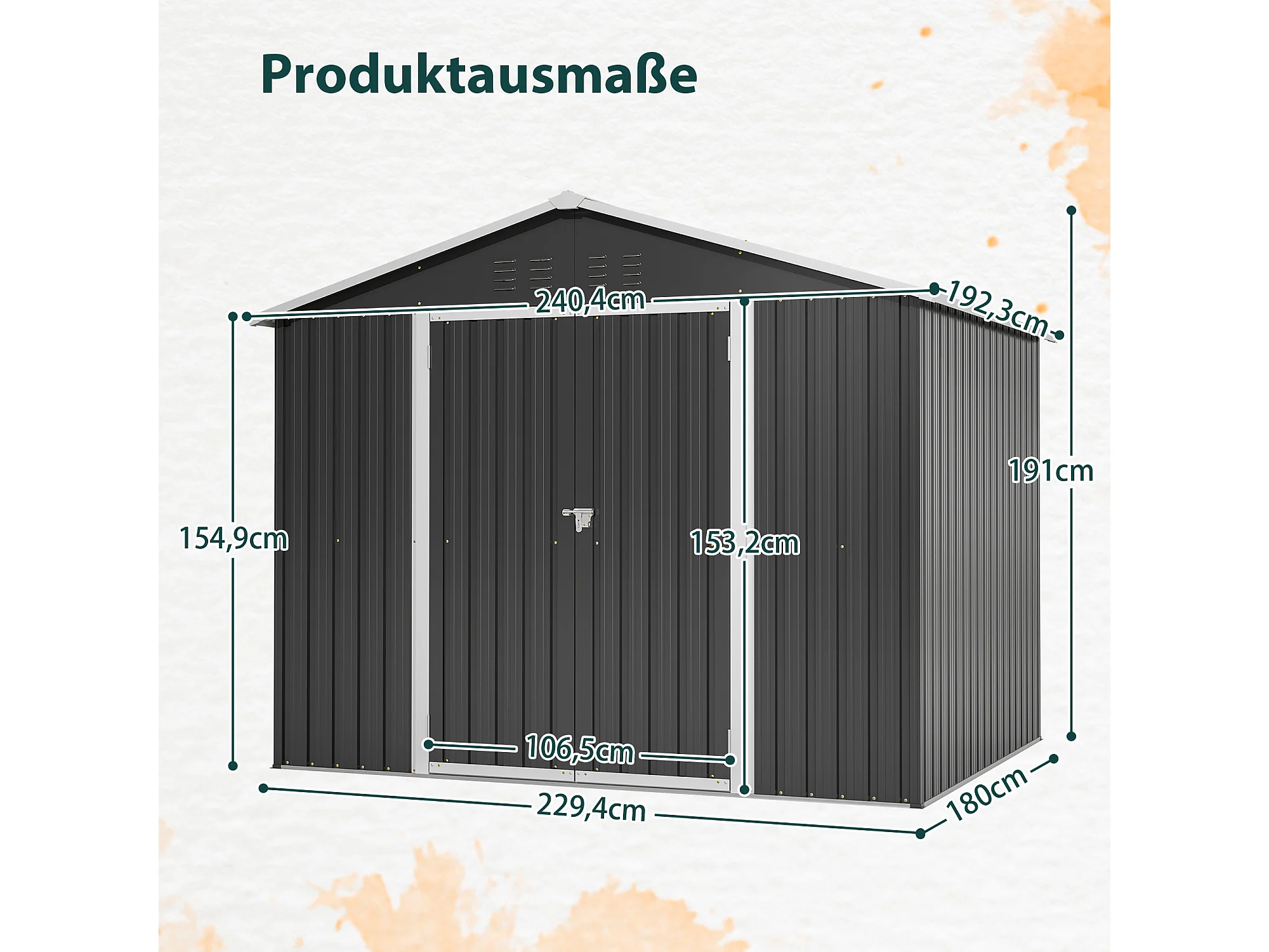 Abri de jardin métallique 240 x 180 cm – acier galvanisé, abri de rangement extérieur avec porte coulissante et ventilation